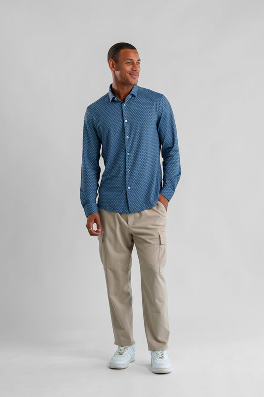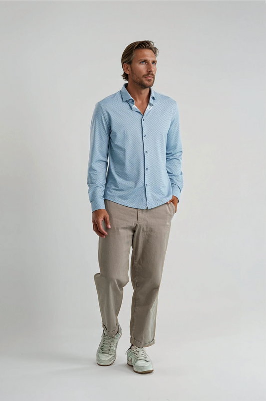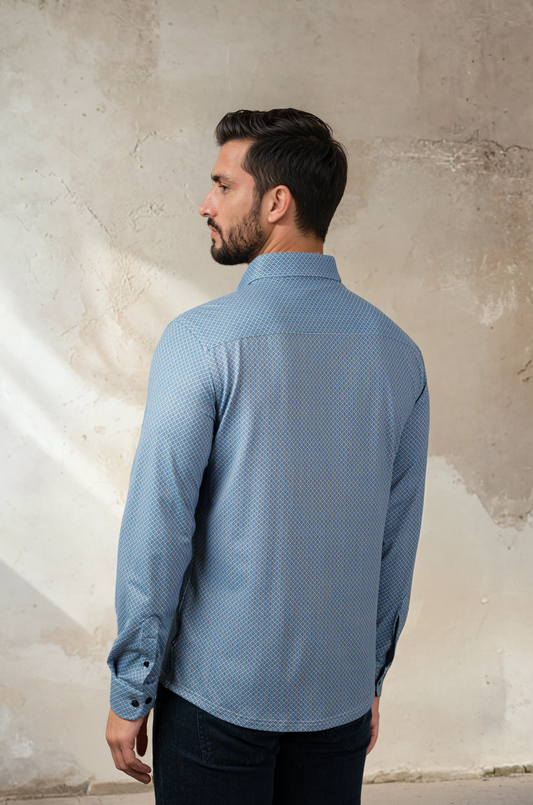 APEX - Light Blue Micro Flower Long Sleeve Shirt