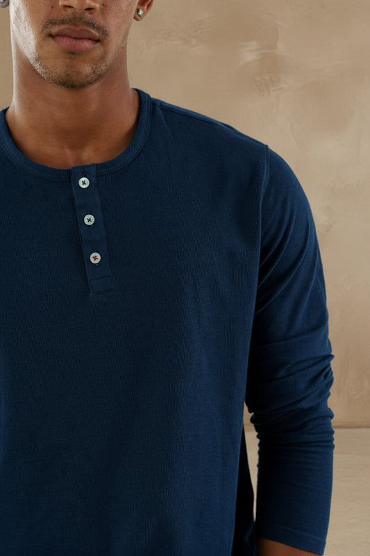 TRAILBLAZER - Navy Solid 3 Buttons Henley