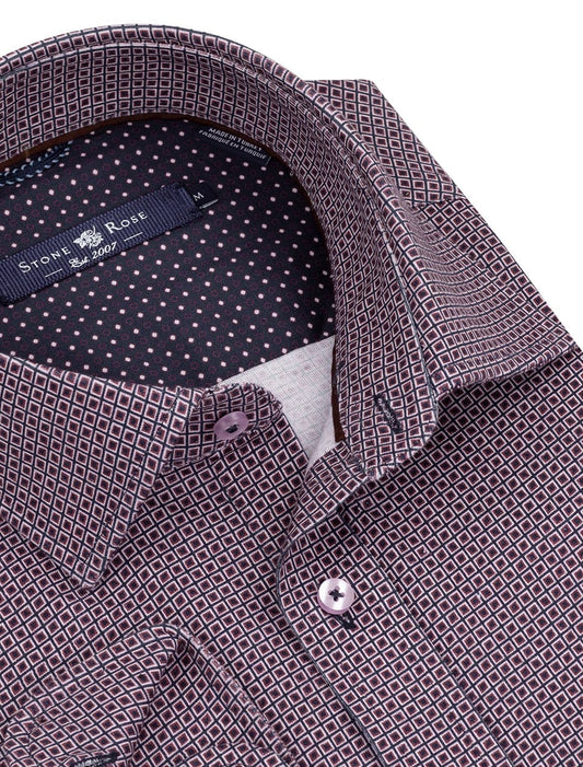 Pink Geometric Knit Long Sleeve Shirt