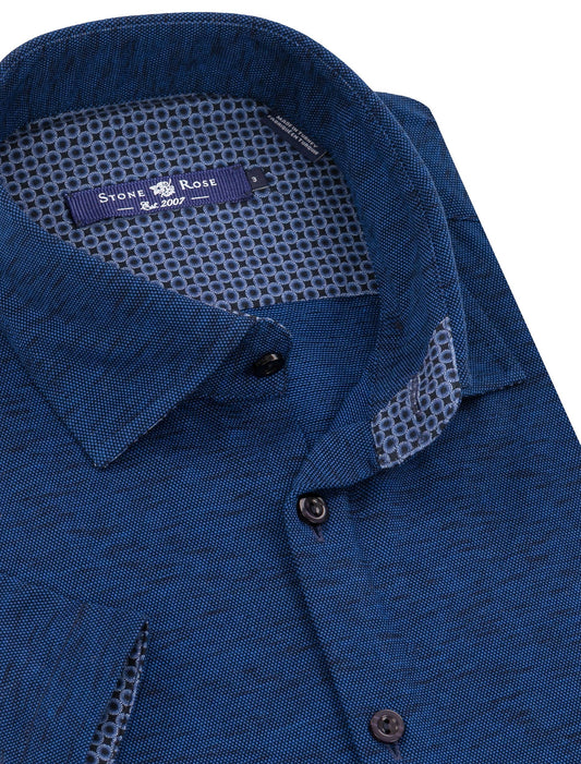 Navy Flame Knit Short Sleeve Shirt
