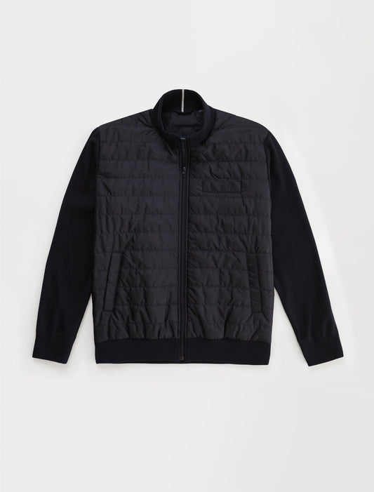 Navy Jacquard Knit Zip Front Hoodie