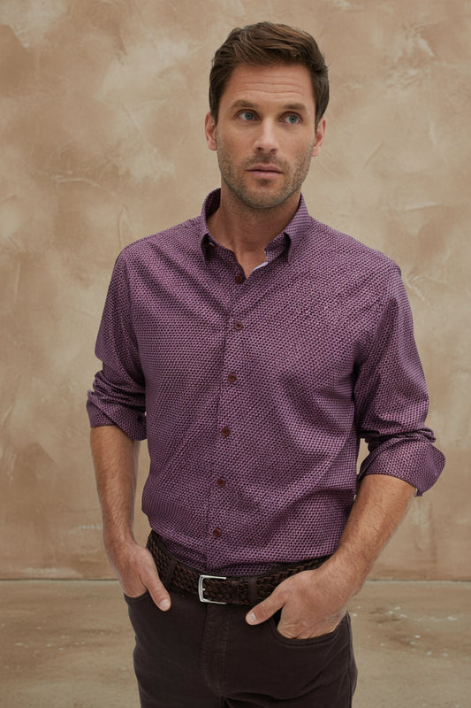 Berry Poplin Woven Geometric Print Long Sleeve Shirt