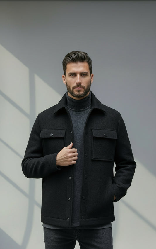 HUNTER - Dark Navy Knit Houndstooth Jacket