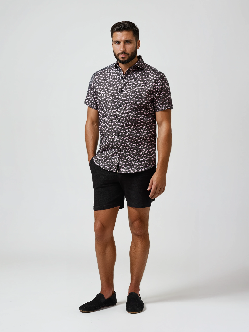 BUONASERA - Black Flamingo Affair Linen Shirt
