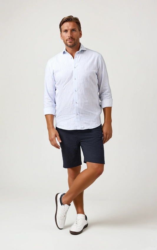 BUONASERA - Light Blue Seabreeze Striped Linen Shirt