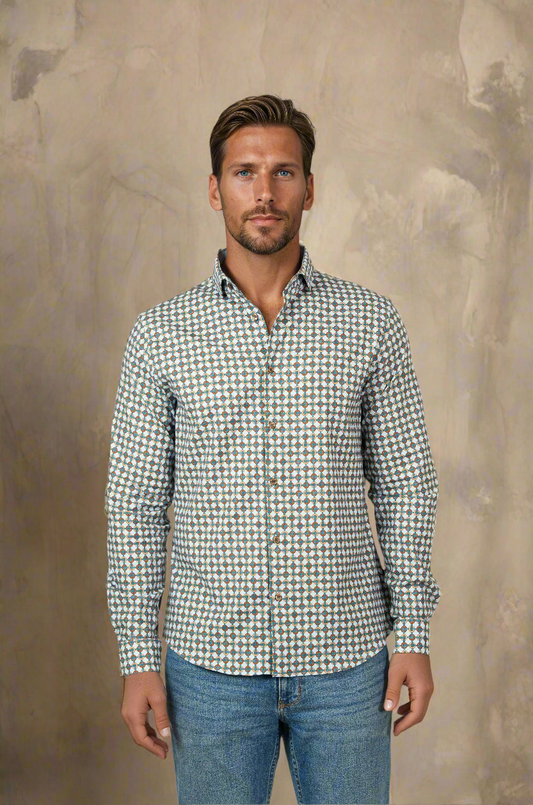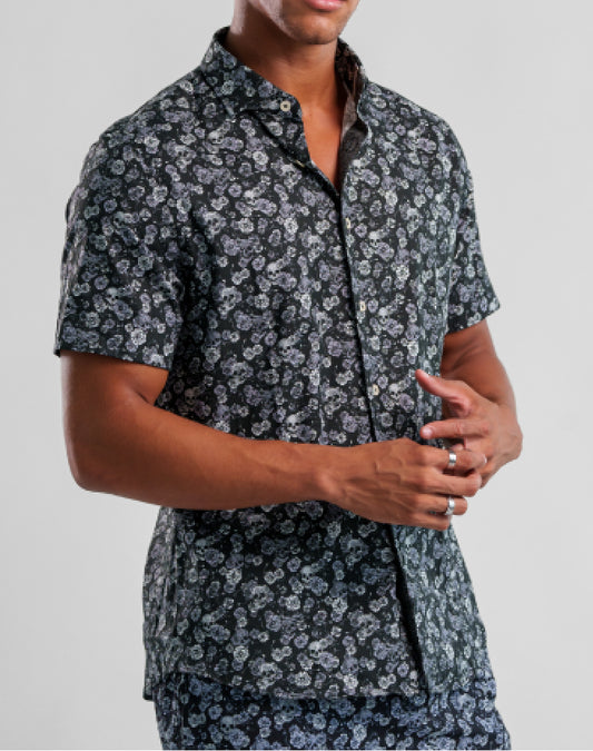 NOVA - Dark Navy Snowbrush Printed Shirt