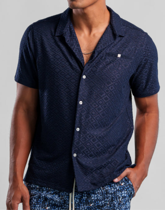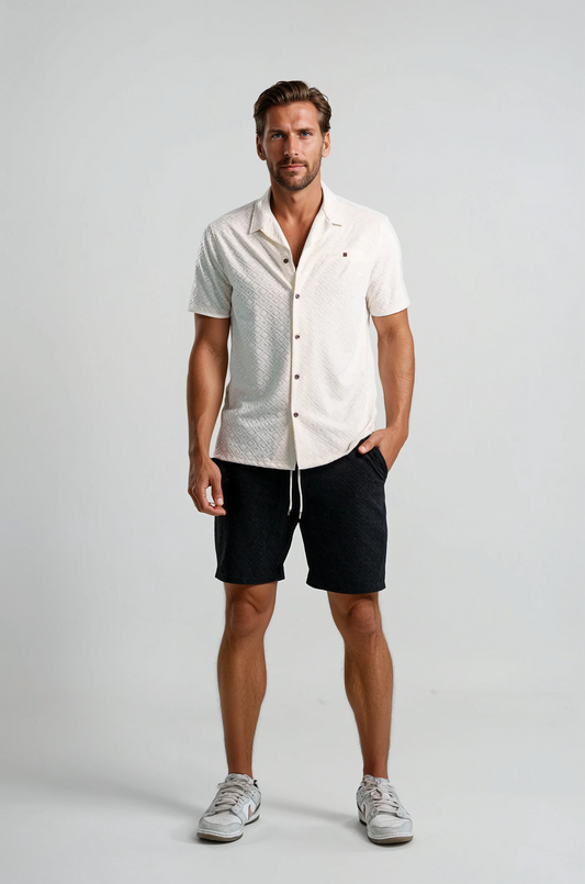 PALMA - Light Beige Diamond Geo Resort Shirt