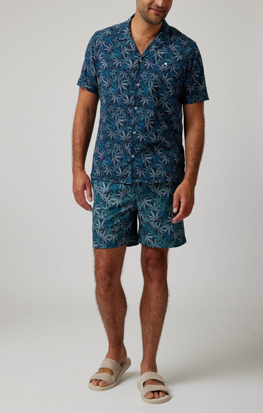 HELIOS - White Leaves Print Short