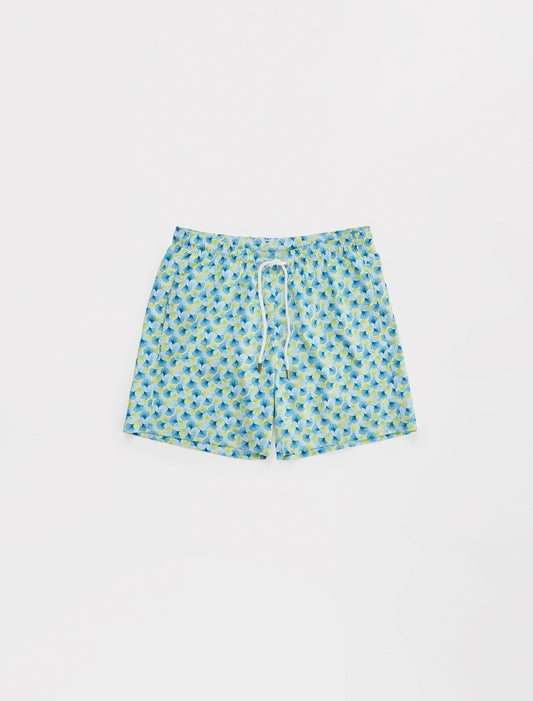 Blue Large Leaf Print Swimshorts