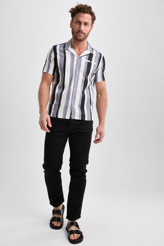 Black Stripped Resort Short Sleeve Shirt