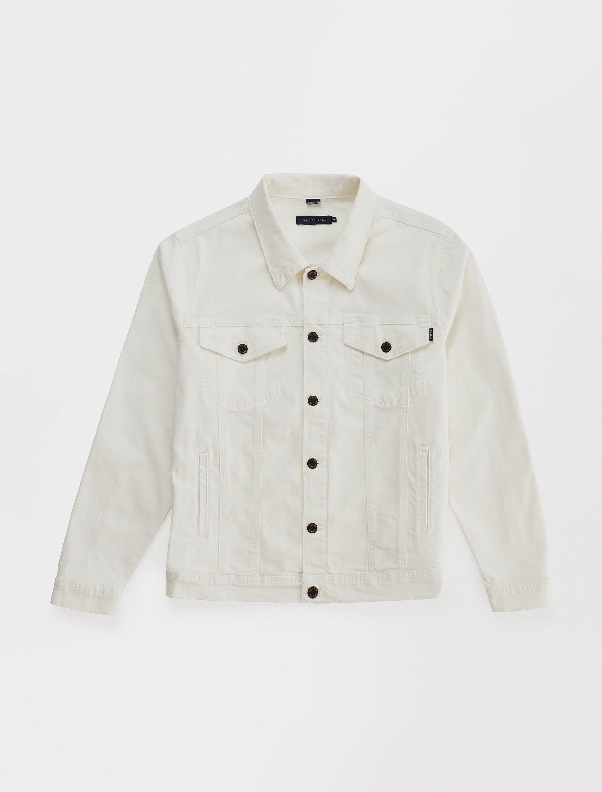 Stone Rose presents the quintessential White Trucker Jacket, a versatile piece that transcends age, designed for the modern man's wardrobe. This jacket is a perfect blend of classic style and contemporary design, suitable for men aged 18 to 80.