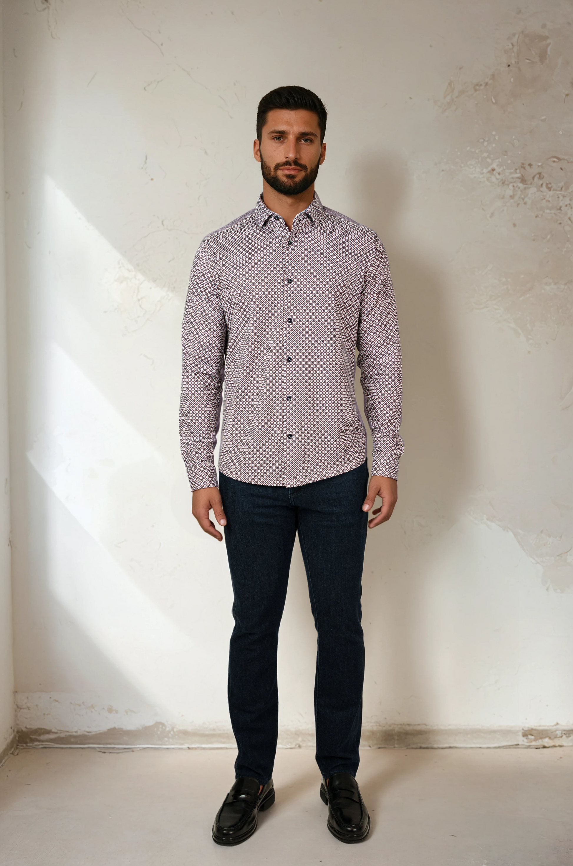 The APEX- Dark Pink Brilliant cut Geo Shirt from our Apex Collection features a clean, structured profile with a soft hand-feel, ideal for everyday wear and versatility across seasons.