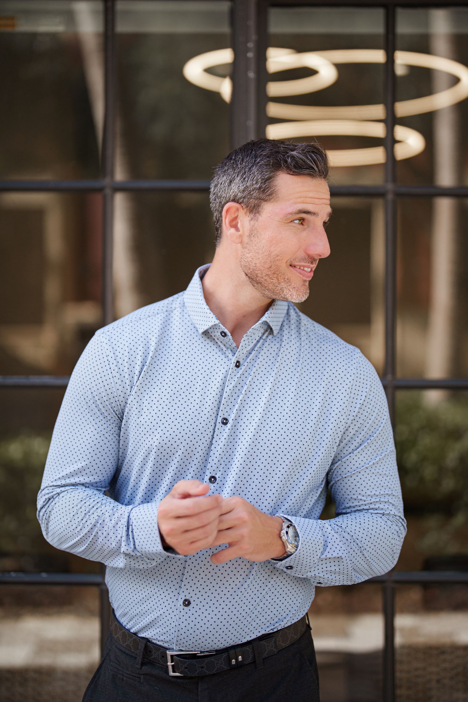 Discover our expanded selection of Techno Stretch Shirts with our new APEX Collection -crafted from a stretchy, natural-feeling polyester blend designed to keep you comfortable on the move. This micro dot print shirt will be a great add-on to your closet. It's subtle print will add to your attire a sophisticated yet stylish look. Our goal was to create a product line that offers a wider range of motion, unlike most dress shirts on the market today. With tremendous stretch and resilience, these shirts are made to last and simplify your life. Easy to wash and even easier to wear.