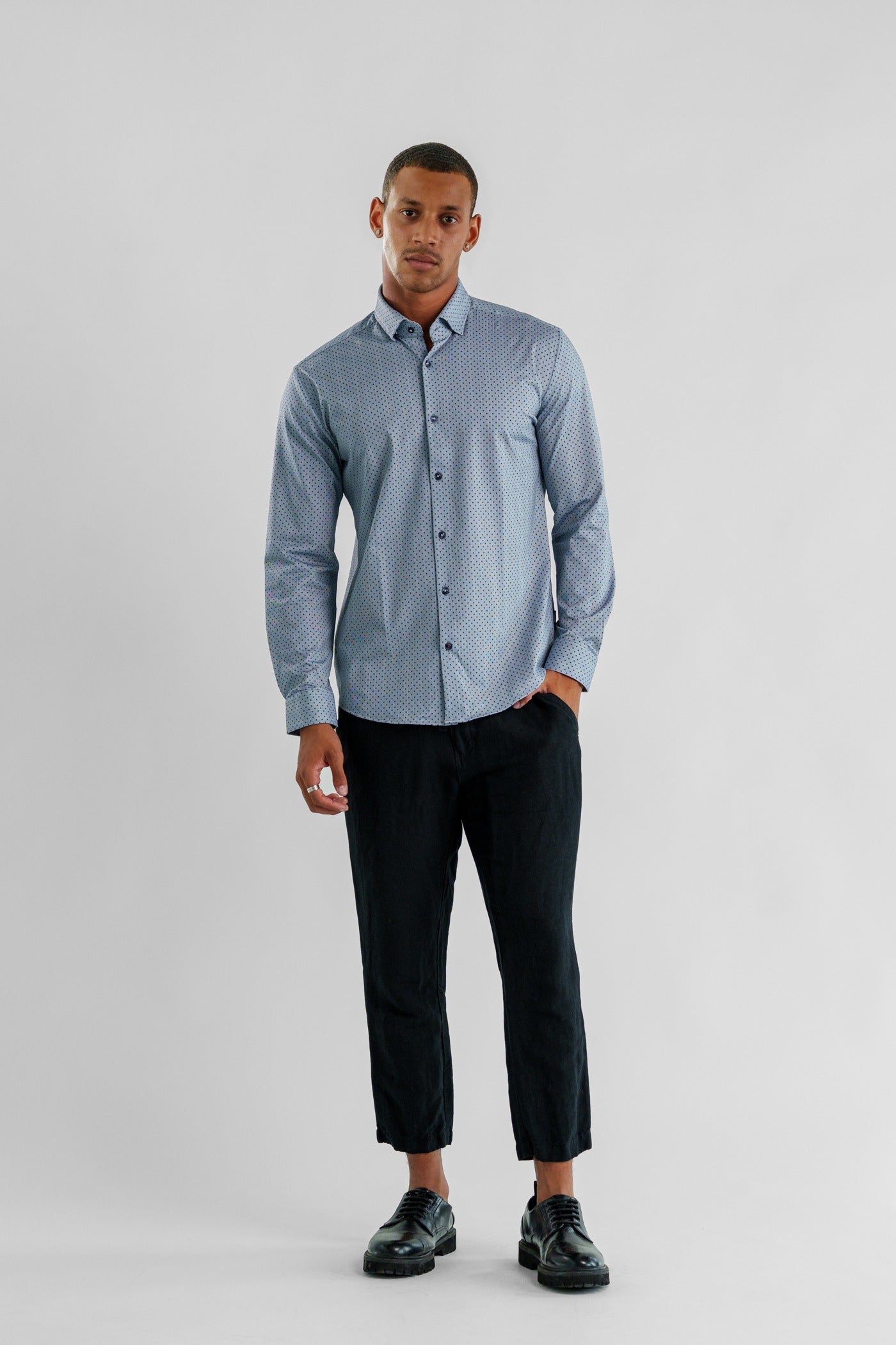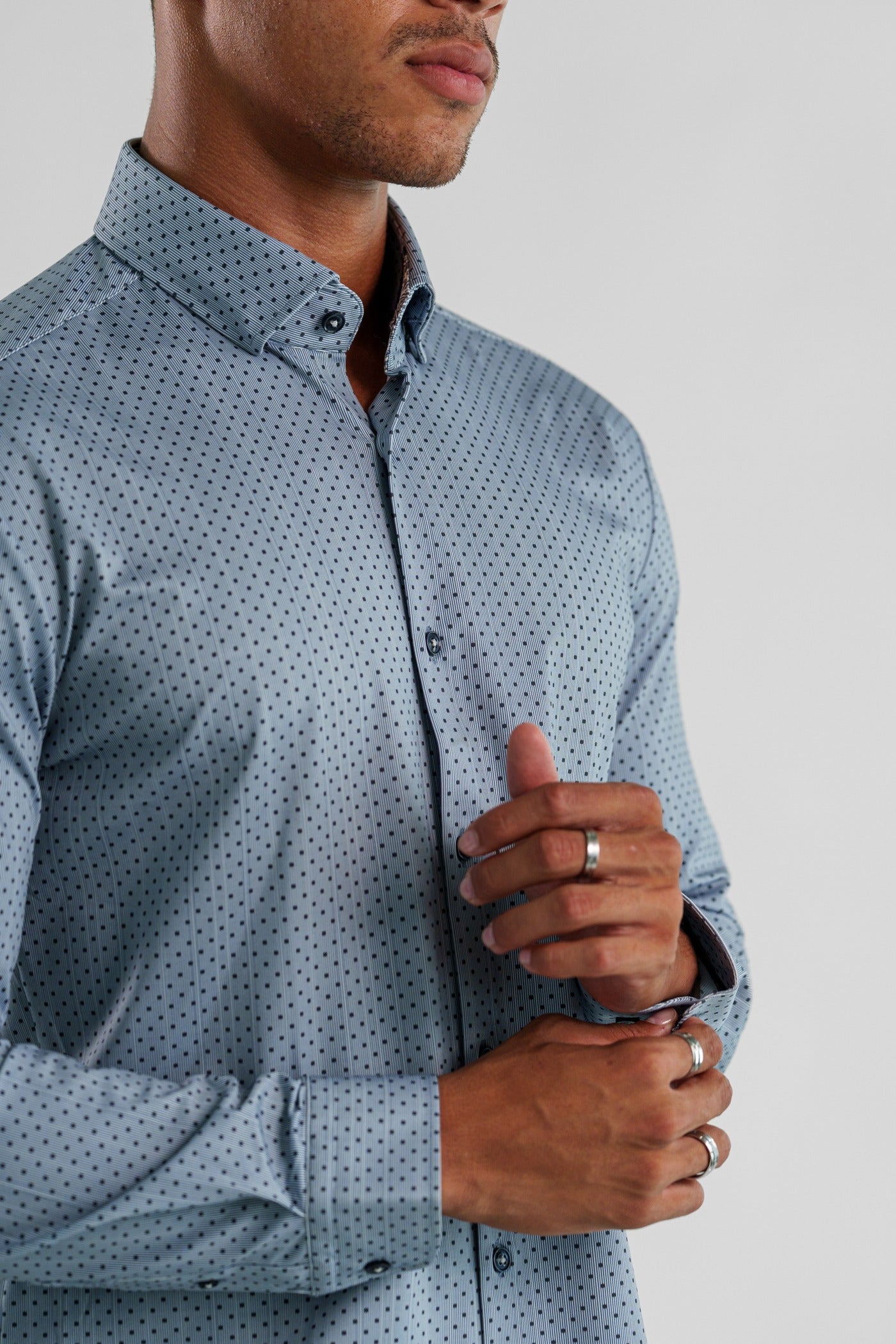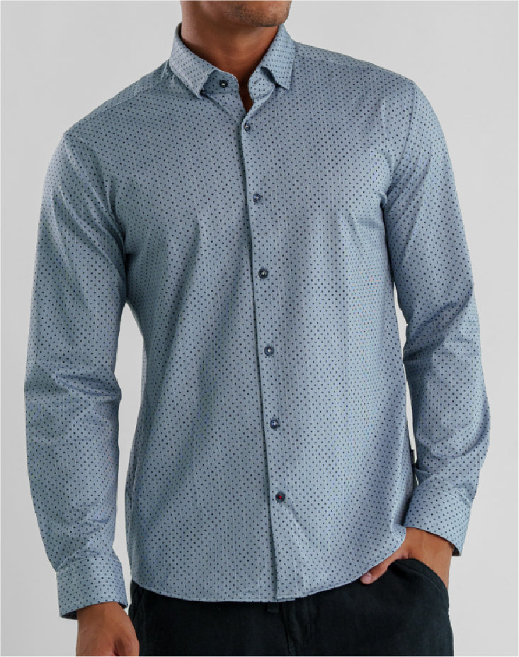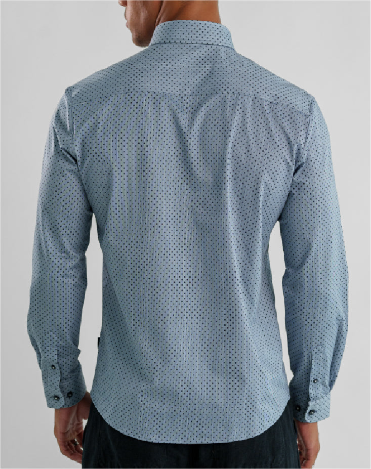 APEX - Medium Blue Micro Dot Long Sleeve Shirt