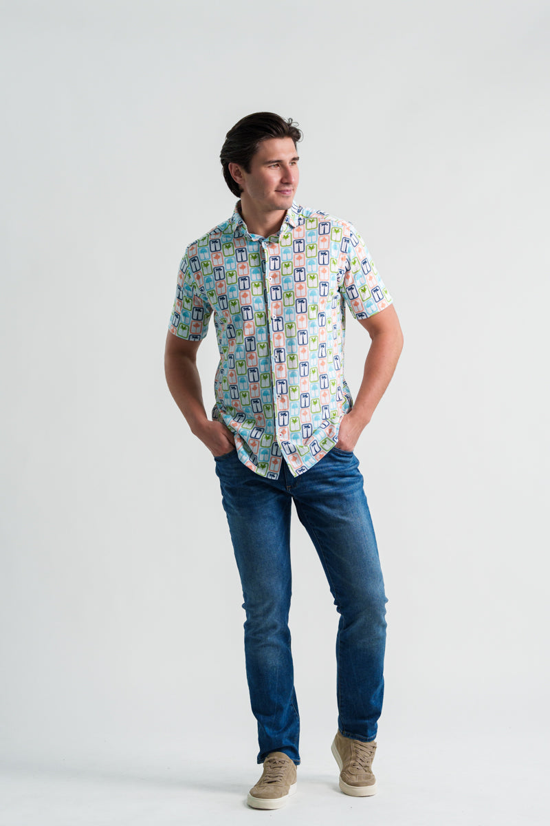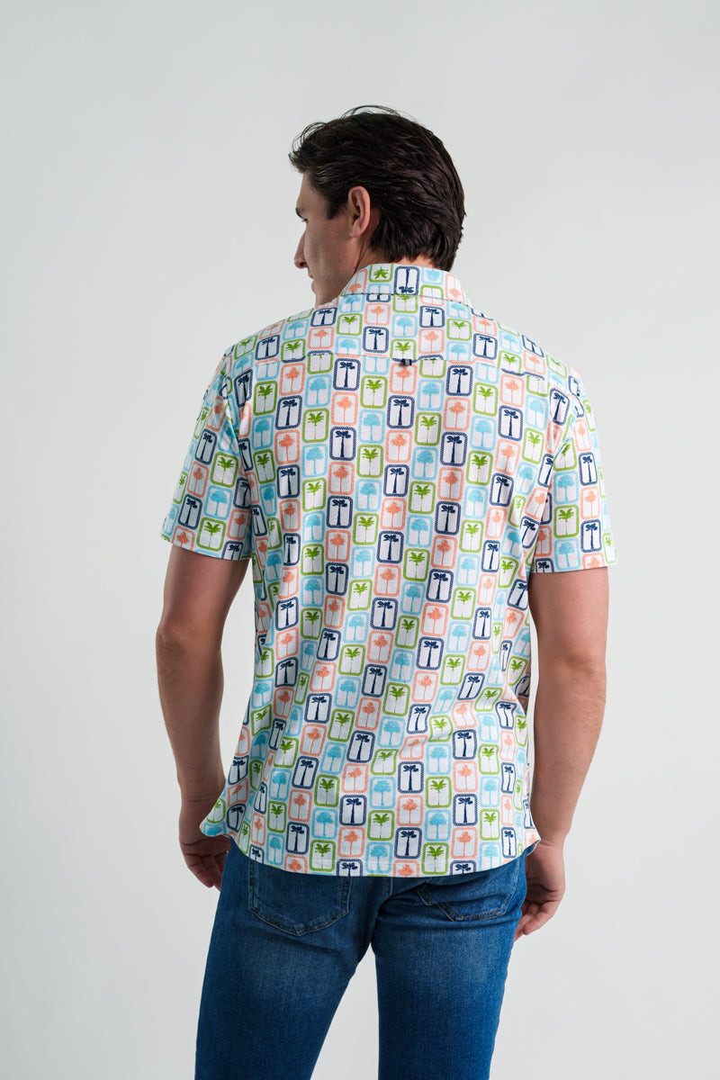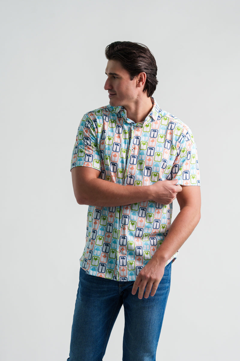 The ATLAS Jersey Short Sleeve Shirt – Boardwalk Palms channels laid-back summer charm with its retro palm tree design, evoking memories of boardwalk strolls and seaside escapes.