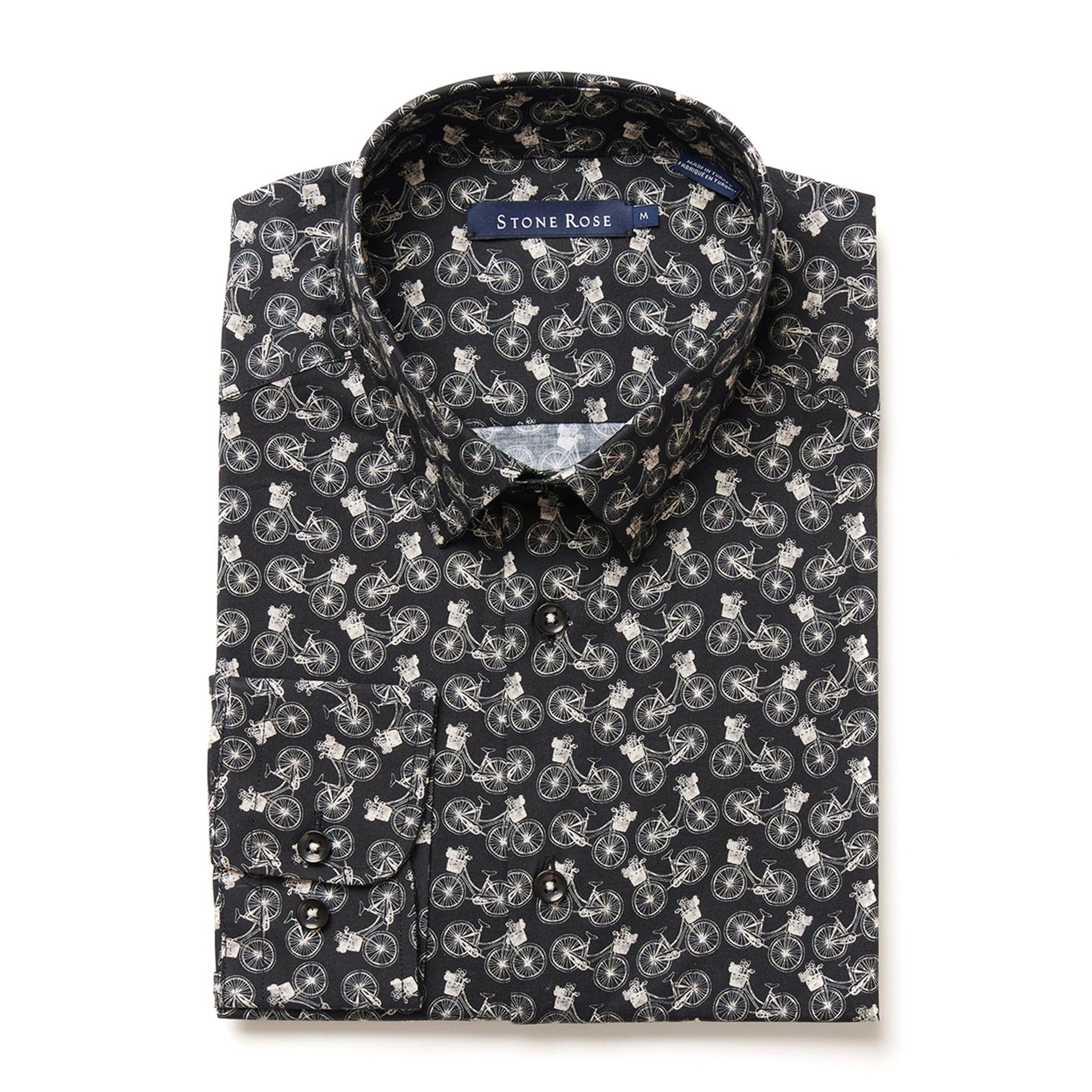 Discover the charm of the Black Bicycles Print Shirt, a unique addition to the Stone Rose collection, designed for the modern man. This shirt, perfect for men aged 18 to 80, blends classic style with playful sophistication, making it a versatile choice for various occasions.
