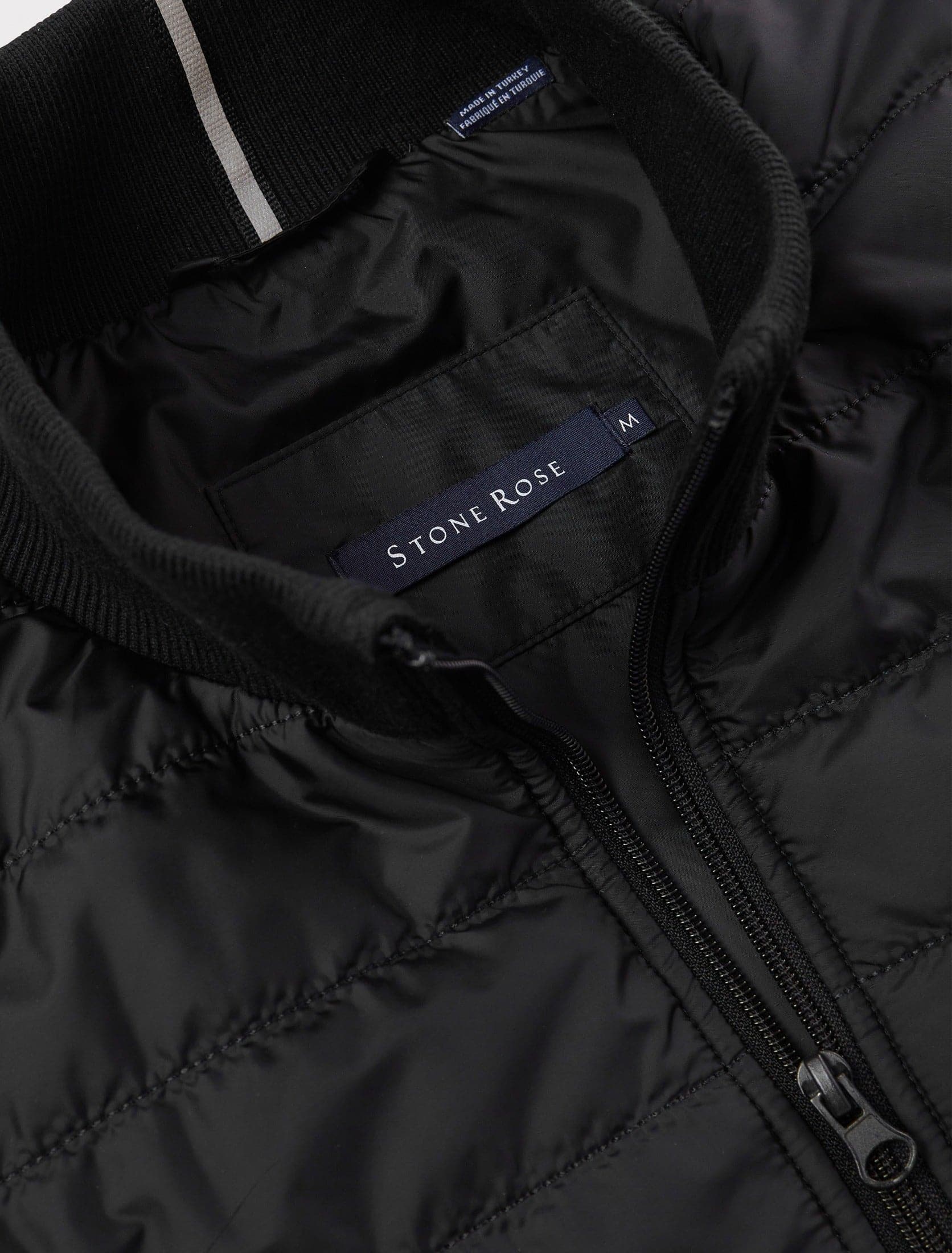 Stone Rose is proud to introduce the Black Hybrid Bomber Jacket, a perfect fusion of classic design and modern innovation. Immerse yourself in its deep black hue, a color that exudes sophistication and versatility, making it an essential addition to every man's wardrobe.