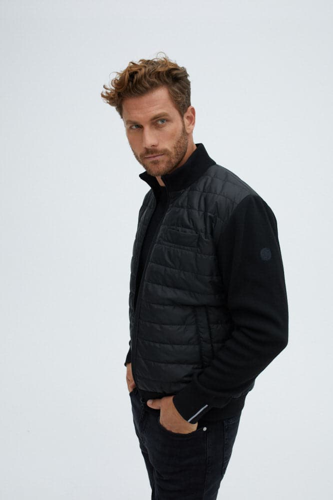Black Hybrid Bomber Jacket