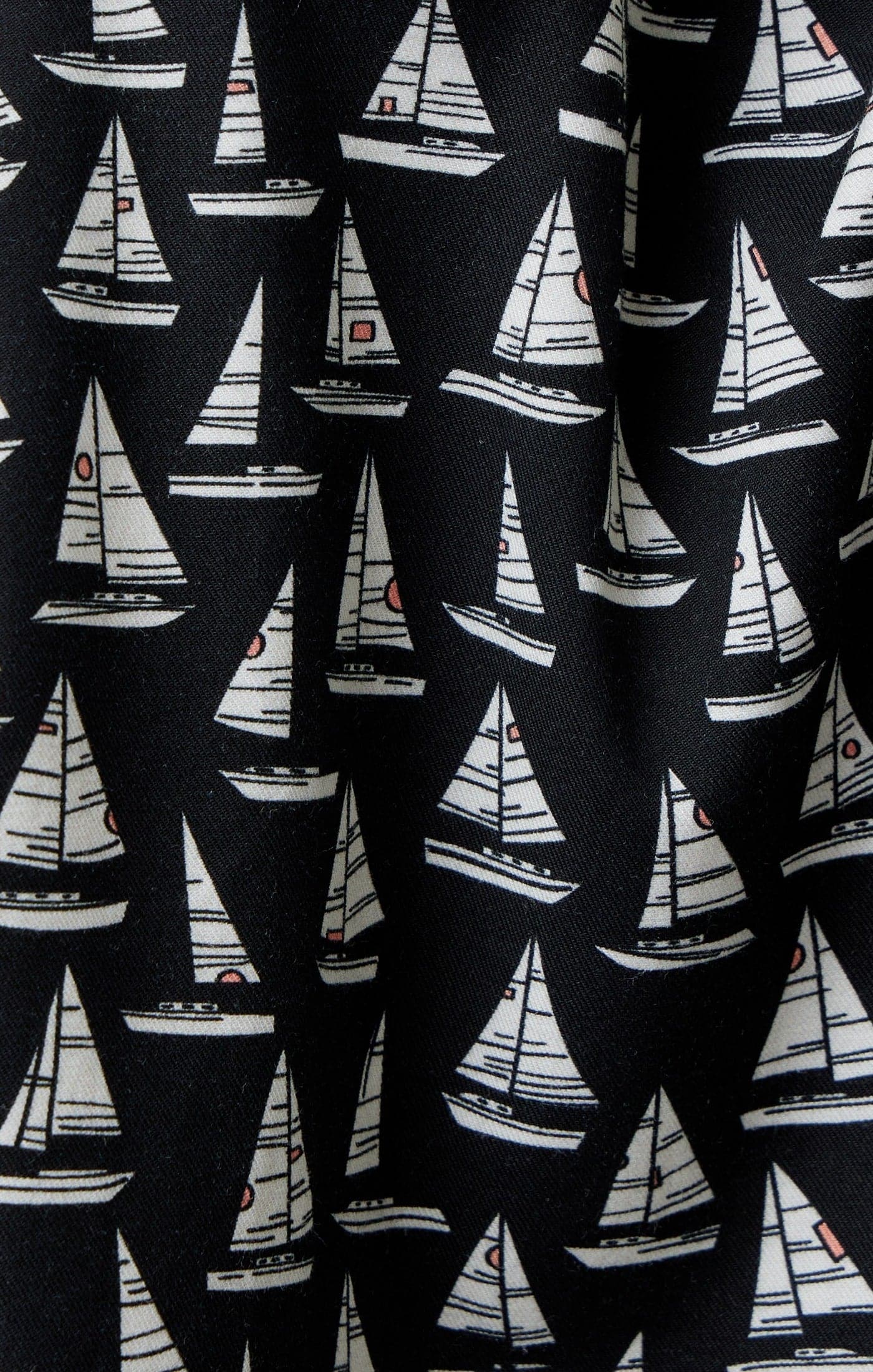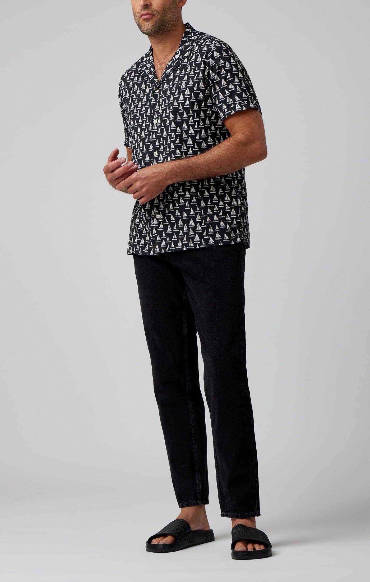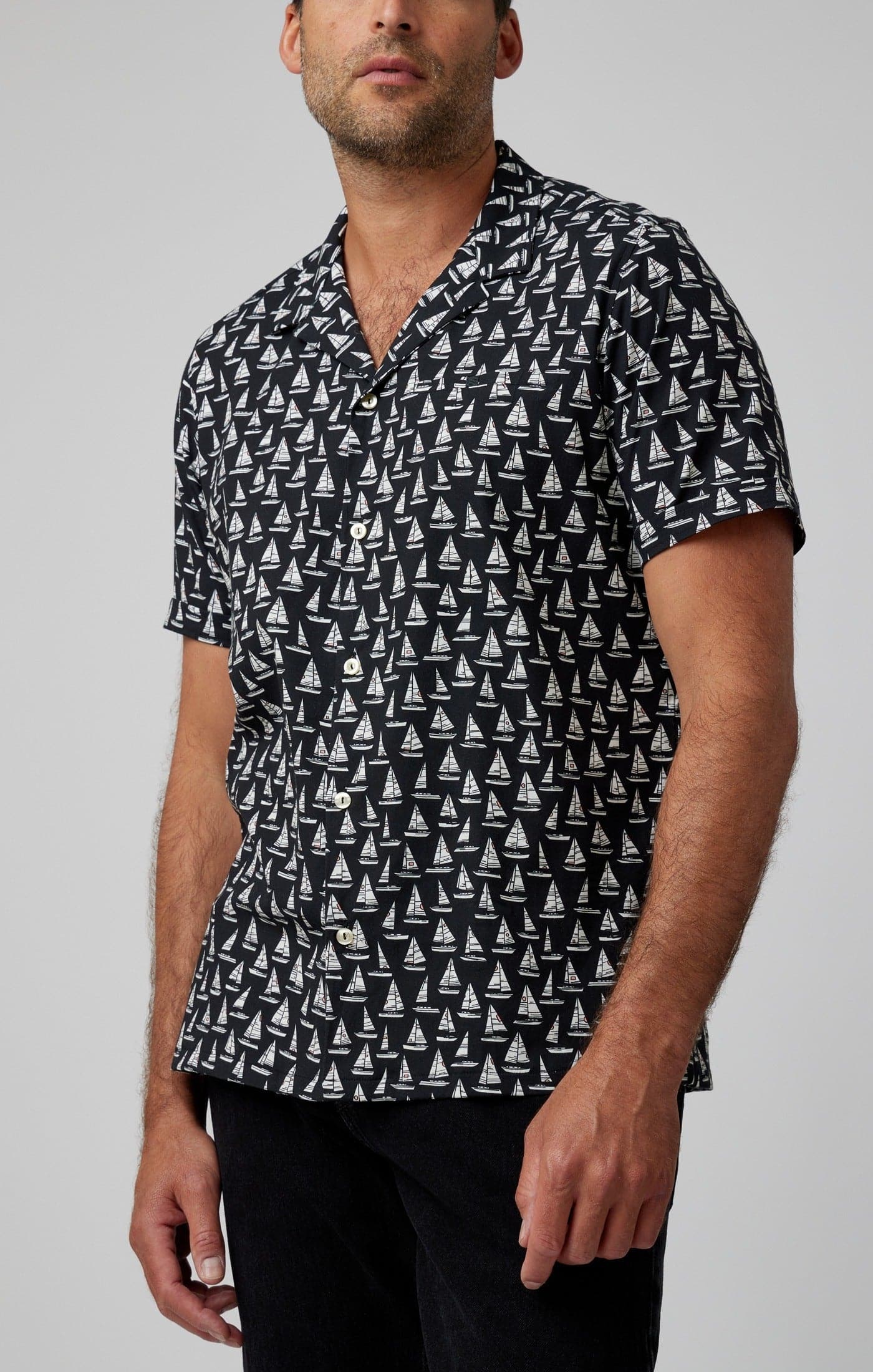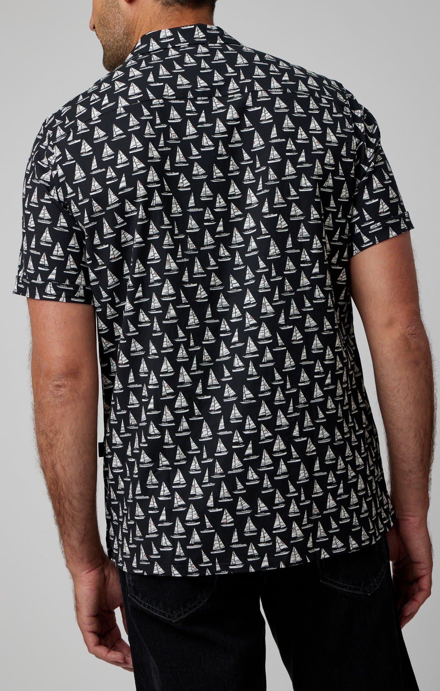 Featuring a striking black and white sailboat print, this shirt captures the essence of nautical adventure. The bold pattern, thoughtfully created and curated in-house, is complemented by subtle yet timeless details that make the shirt stand out. Whether you're navigating the urban jungle or setting off on a seaside getaway, this shirt will keep you looking sharp and feeling comfortable.