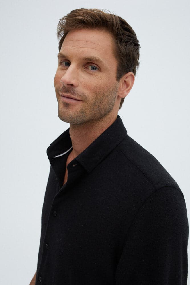 Black T-Series Solid Jersey Fleece Long Sleeve Shirt