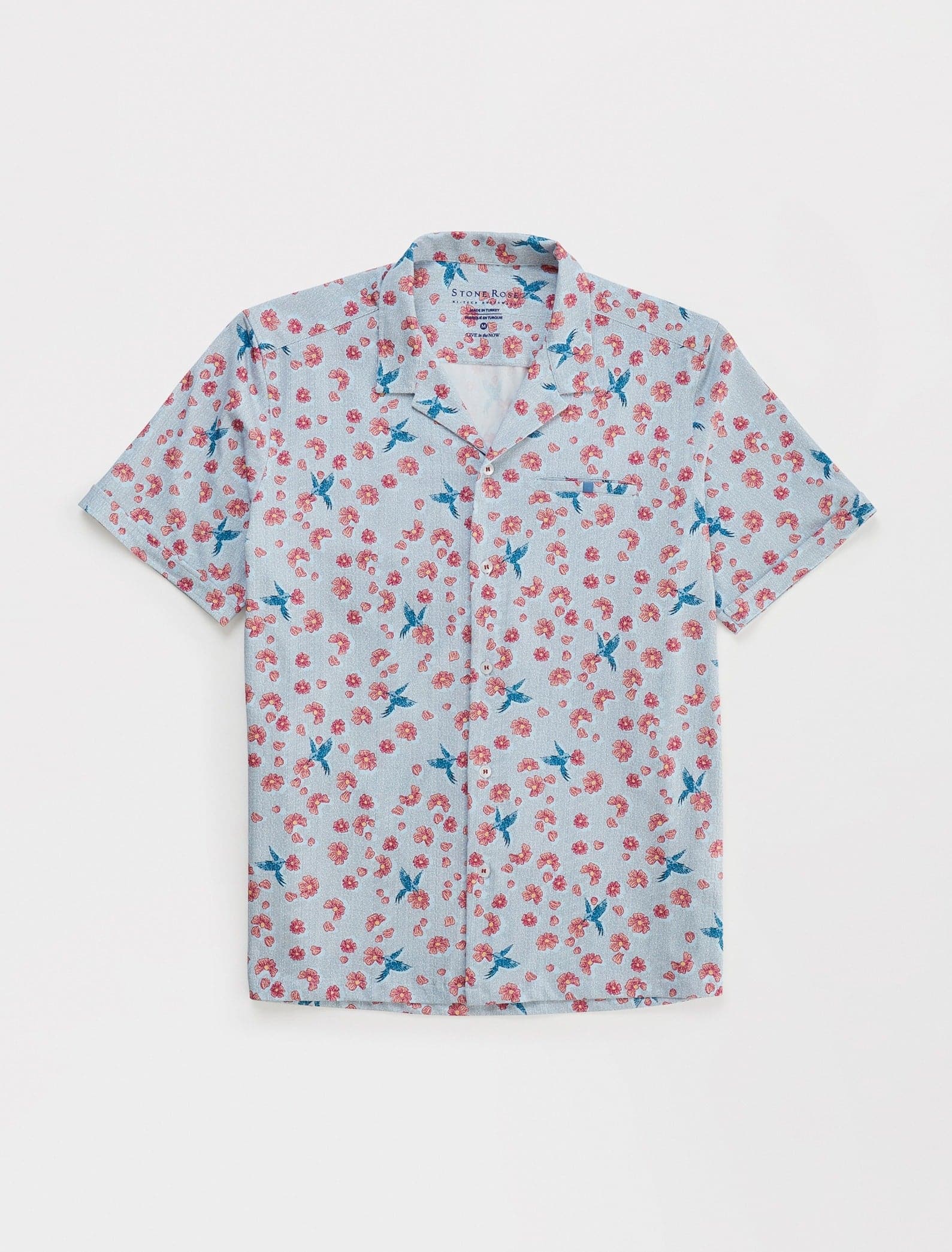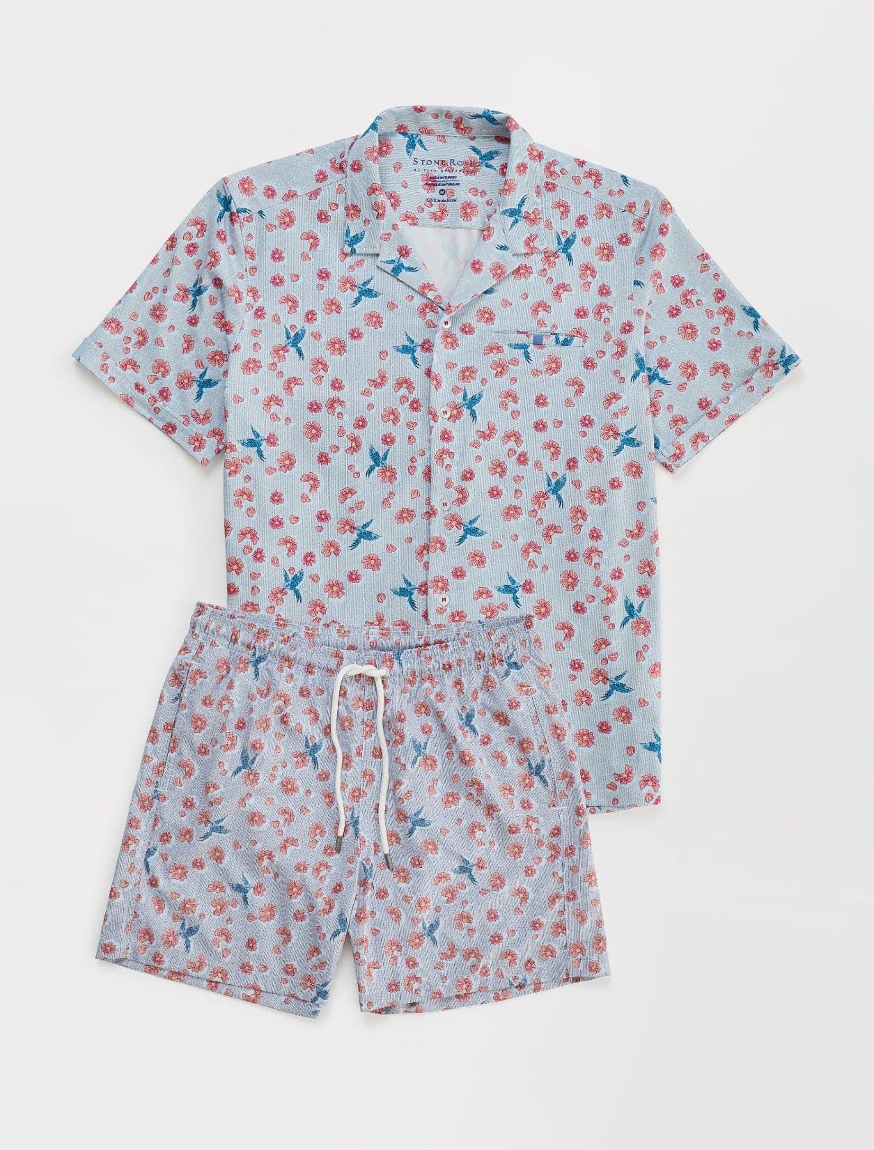 These technical short sleeved jersey knit shirts come in a variety of prints designed in-house and feature a modern resort collar and chest pocket, offering our unique take on summer trends.