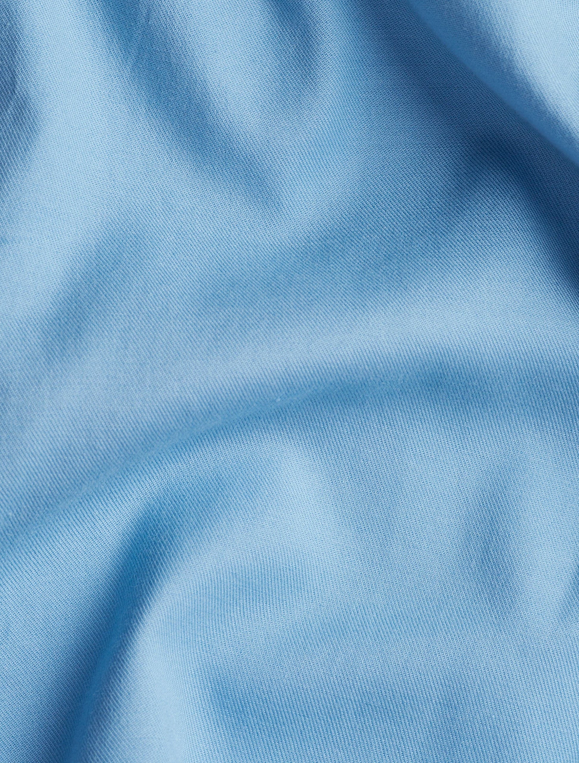 Blue Solid Tencel Long Sleeve Shirts fabrics are made from eucalyptus tree wood pulp, which gives waste from the forest industry a second life. This creates a soft fabric with natural breathability and moisture absorption. Our long sleeved tencel shirts have a unique lightweight feel and have been garment washed for further softening and fading. The sleeves can be rolled to show the accent trims.