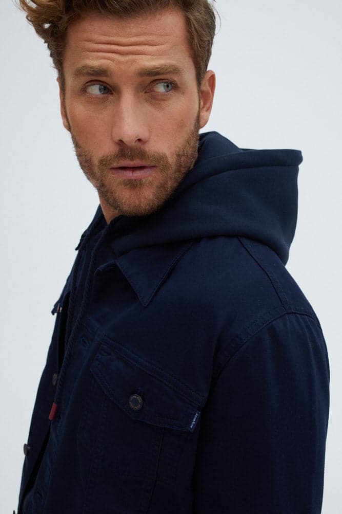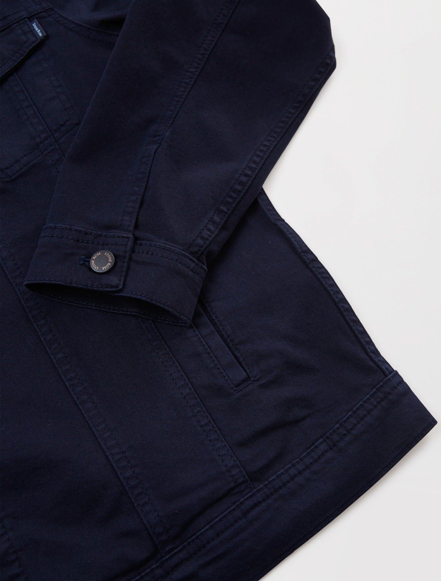 Drenched in a vibrant shade of blue, this jacket is a nod to the timeless trucker design, updated with a contemporary twist. The premium cotton stretch blend fabric ensures every moment is embraced with comfort.