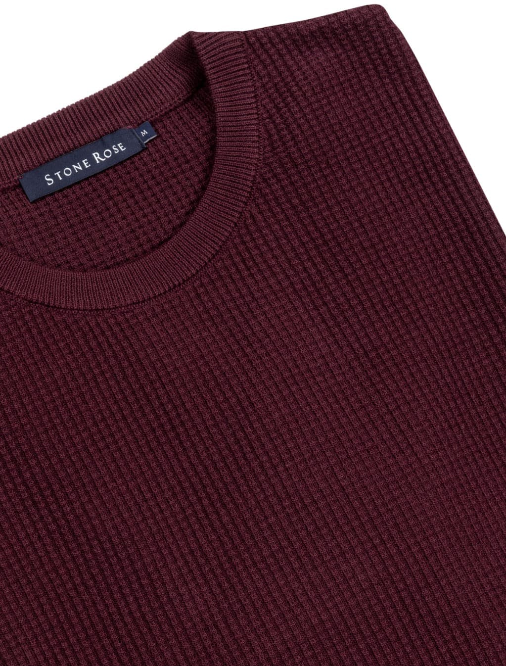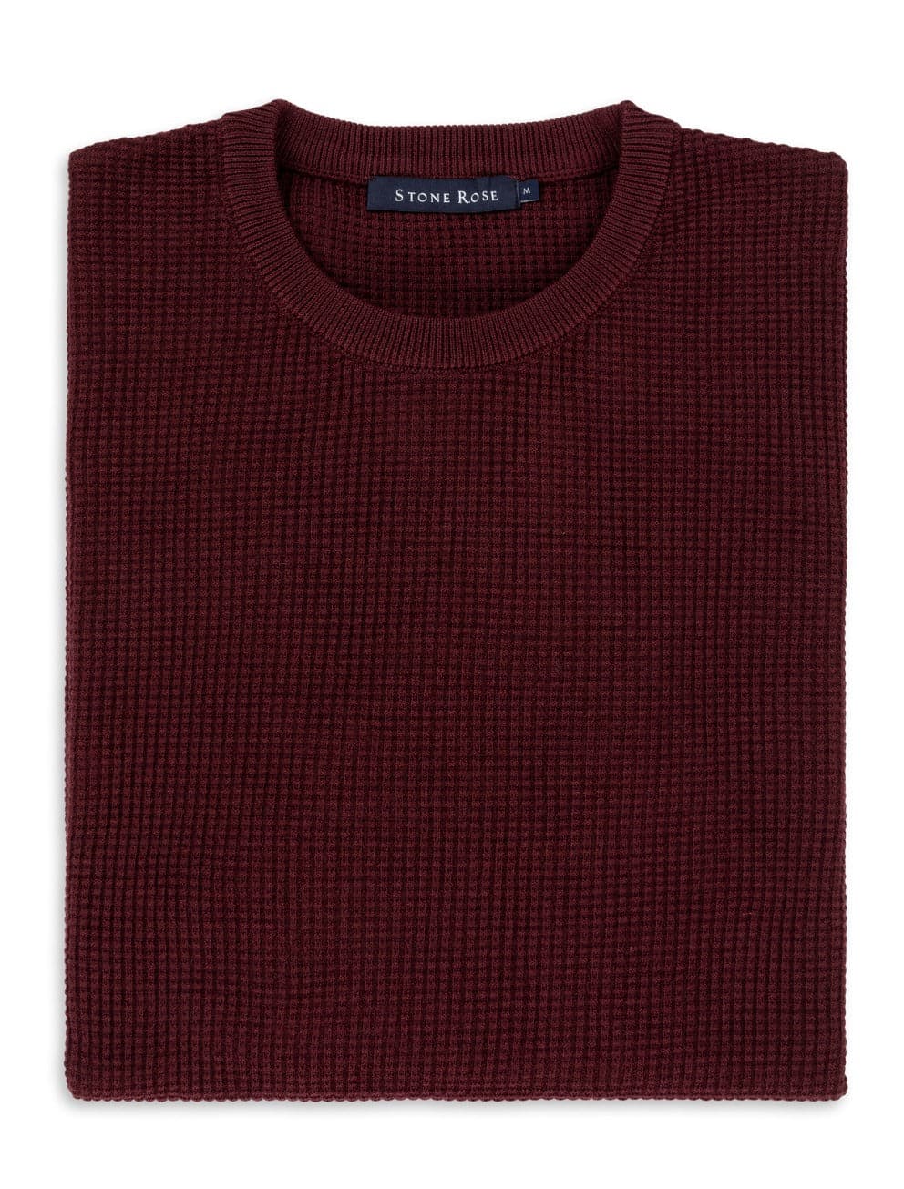 Introducing the Burgundy Waffle Sweater from Stone Rose, a perfect blend of style and comfort for men aged 18 to 80. This sweater is not just a piece of clothing; it's a statement of elegance and sophistication. Its rich burgundy color and unique waffle texture make it a standout addition to any wardrobe.