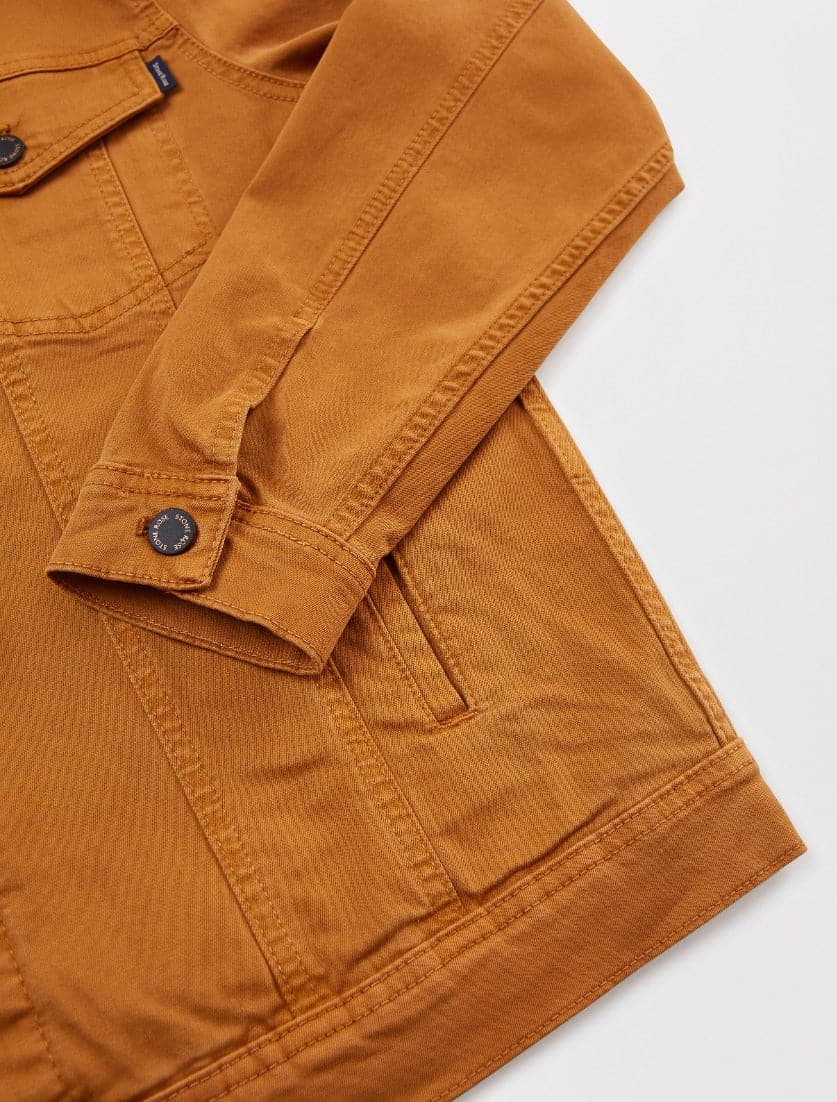 Imbued with a rich deep camel color, the jacket exudes a sense of rugged sophistication. The meticulously chosen cotton stretch blend ensures that comfort doesn't compromise on style, making it a go-to piece for any season.