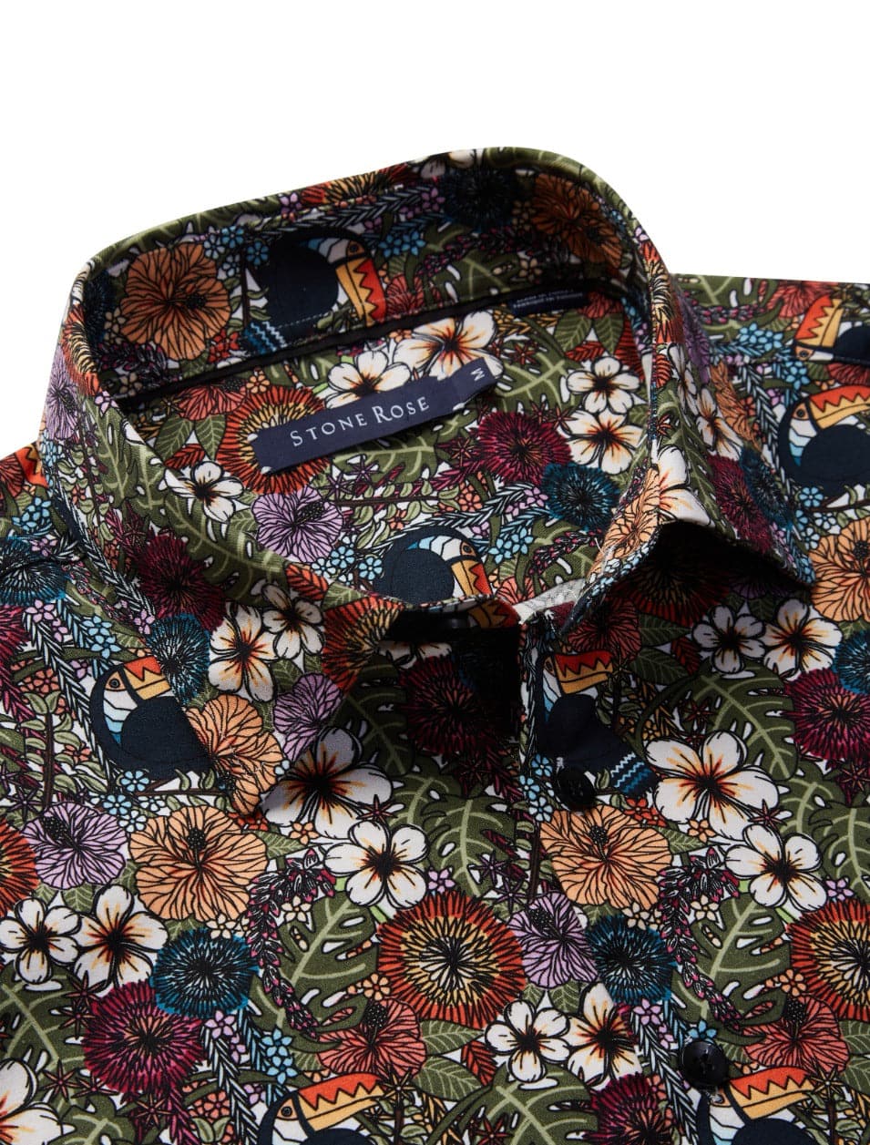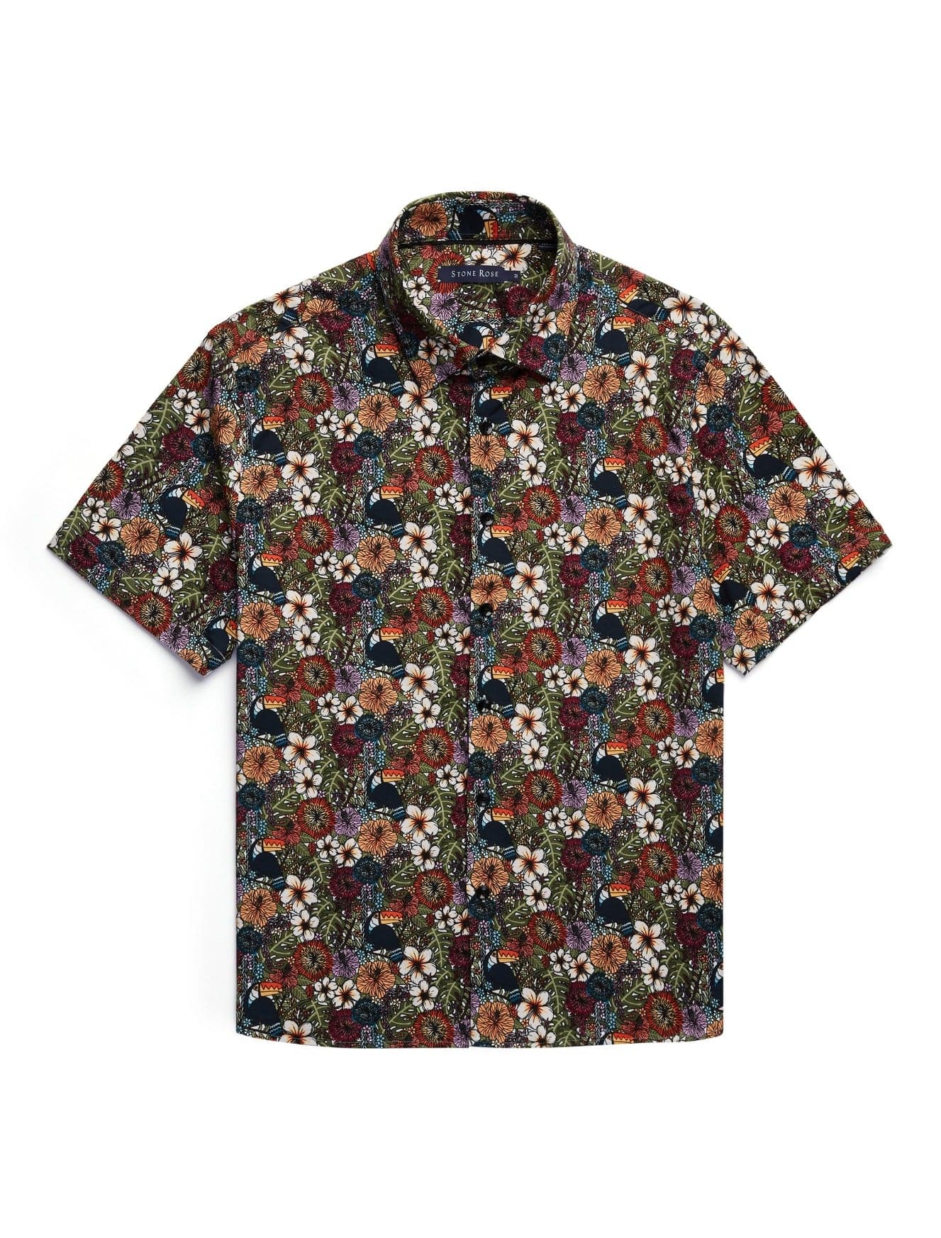 Our Green Jungle Short Sleeve Print Shirt is made from eucalyptus tree wood pulp, which gives waste from the forest industry a second life. These shirts, which are naturally breathable and moisture wicking, have a soft peachy surface that feels great against the body. They are lightweight and flowy, bringing our bold patterns to life. As usual, all the patterns in our Tencel collection have been carefully designed and curated in-house.