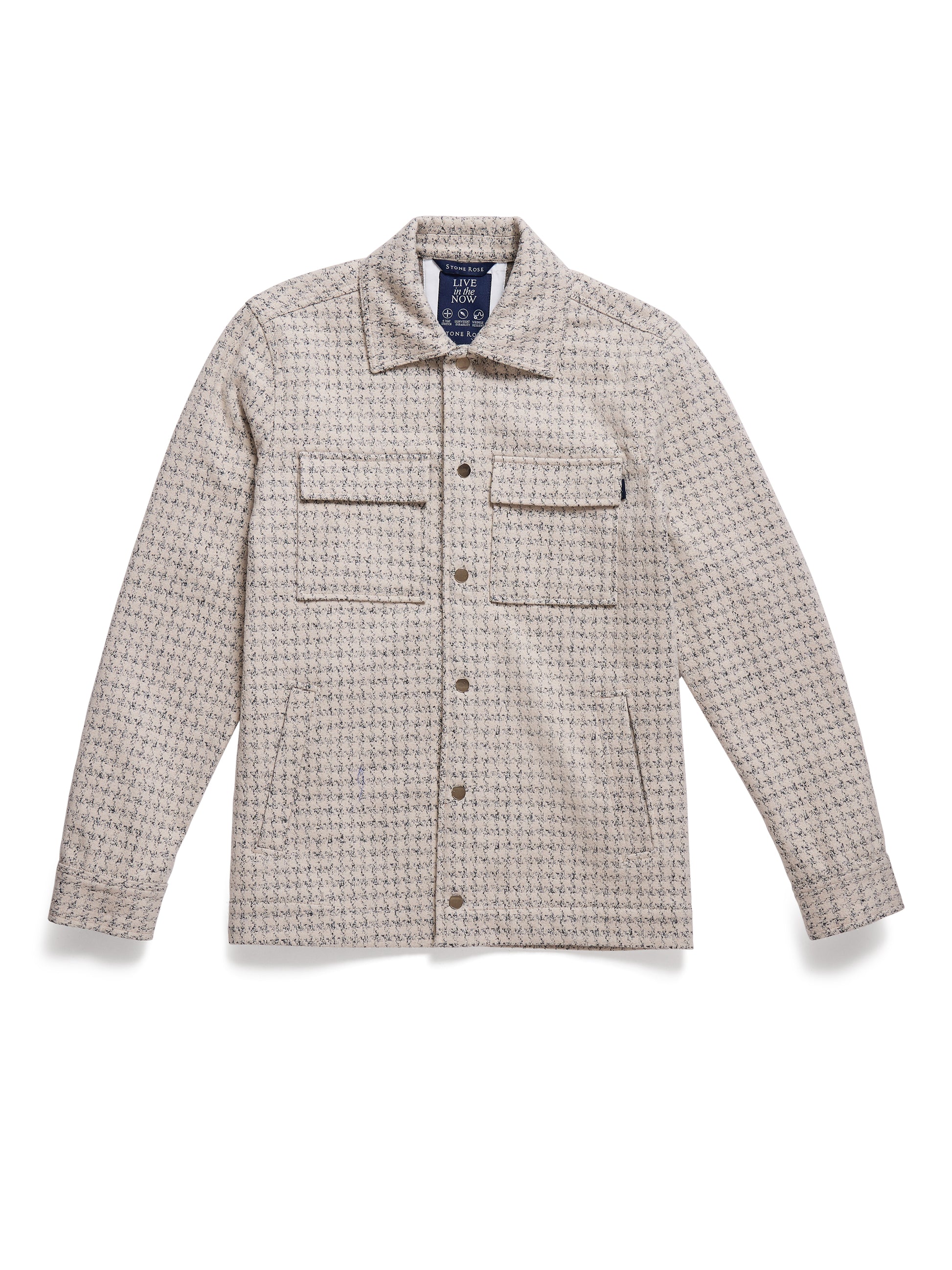 Designed for effortless elegance and comfort, the HUNTER - Light Beige Knit Houndstooth Jacket from our Hunter Collection is where modern utility meets refined style. With its crisp appearance, lightweight structure, and performance-driven fabric, this shirt is built to move with you while maintaining a polished look all day.