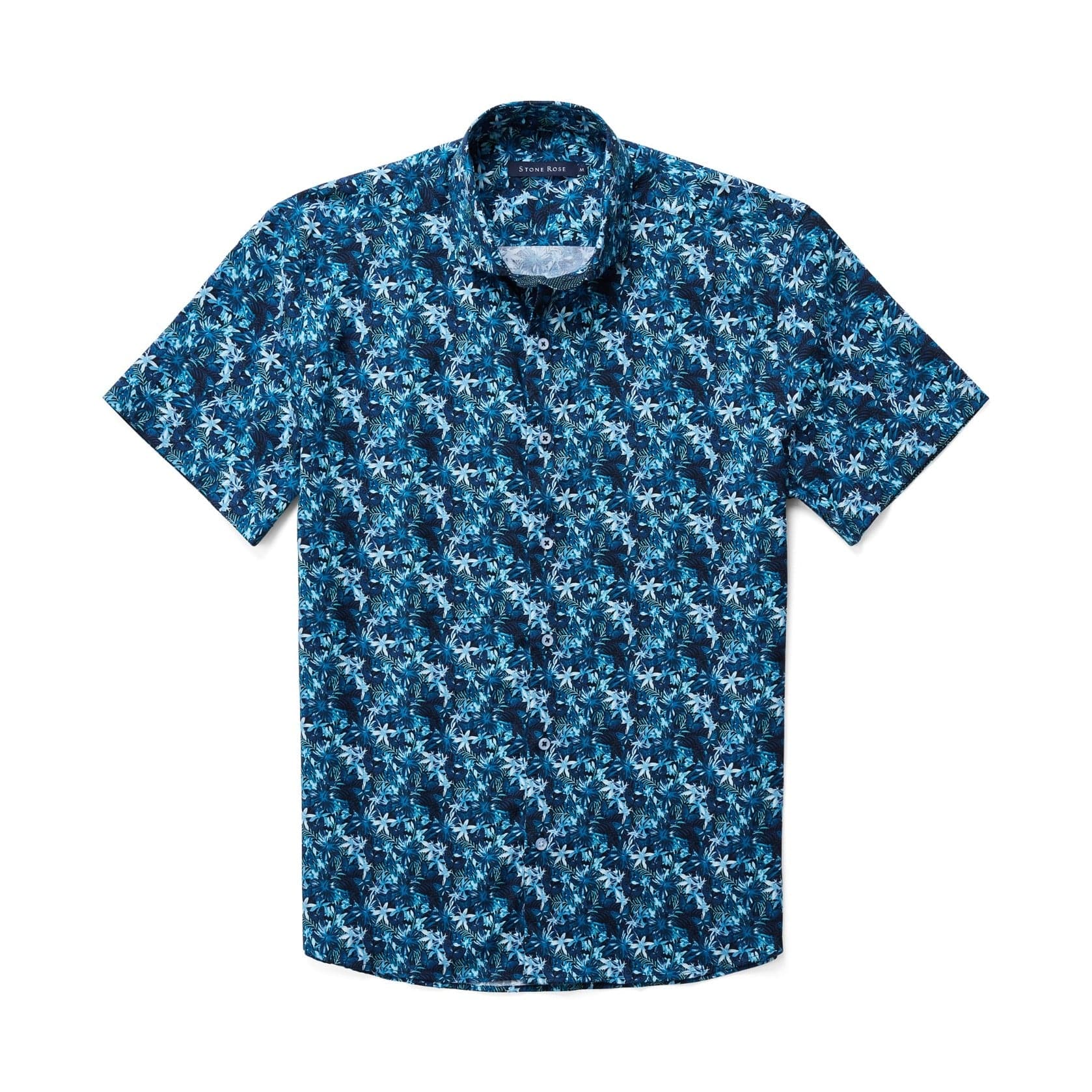 The shirt's design features a serene navy base adorned with delicate butterflies, offering a soft yet vibrant look that captures the spirit of summer. The mix of blues evokes the clear sky and the ocean, bringing a sense of calm and relaxation to your day. This unique pattern, thoughtfully created and curated in-house, is complemented by eye-catching details that make the shirt stand out in any setting.