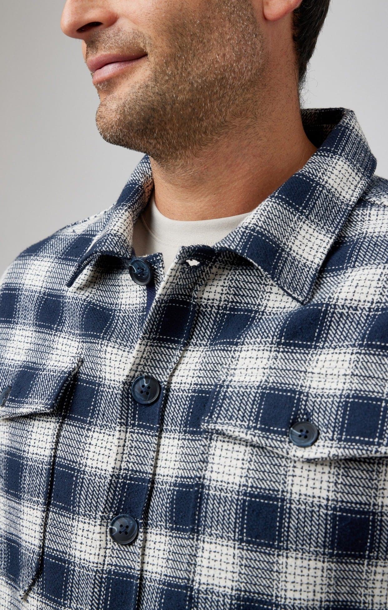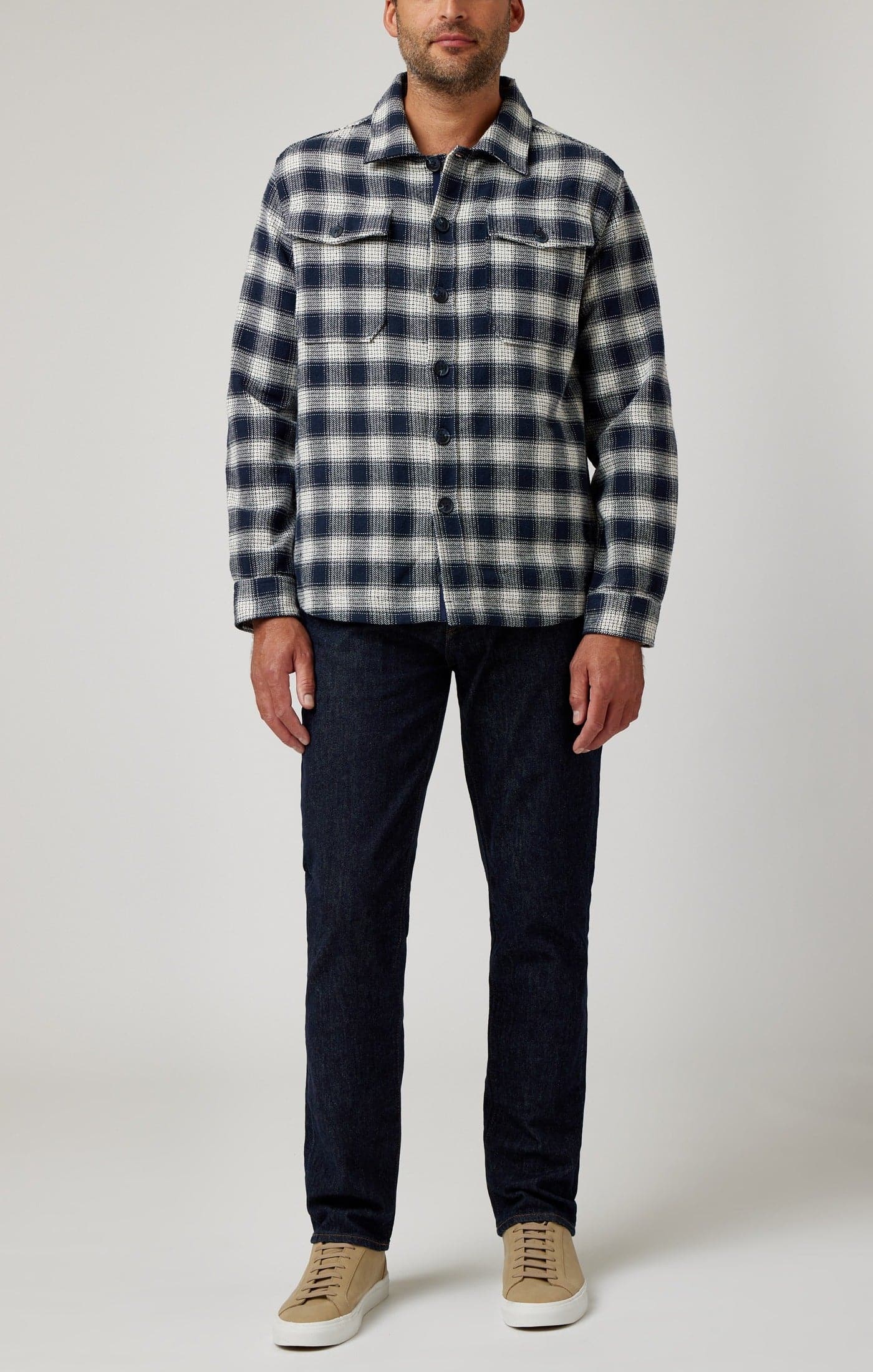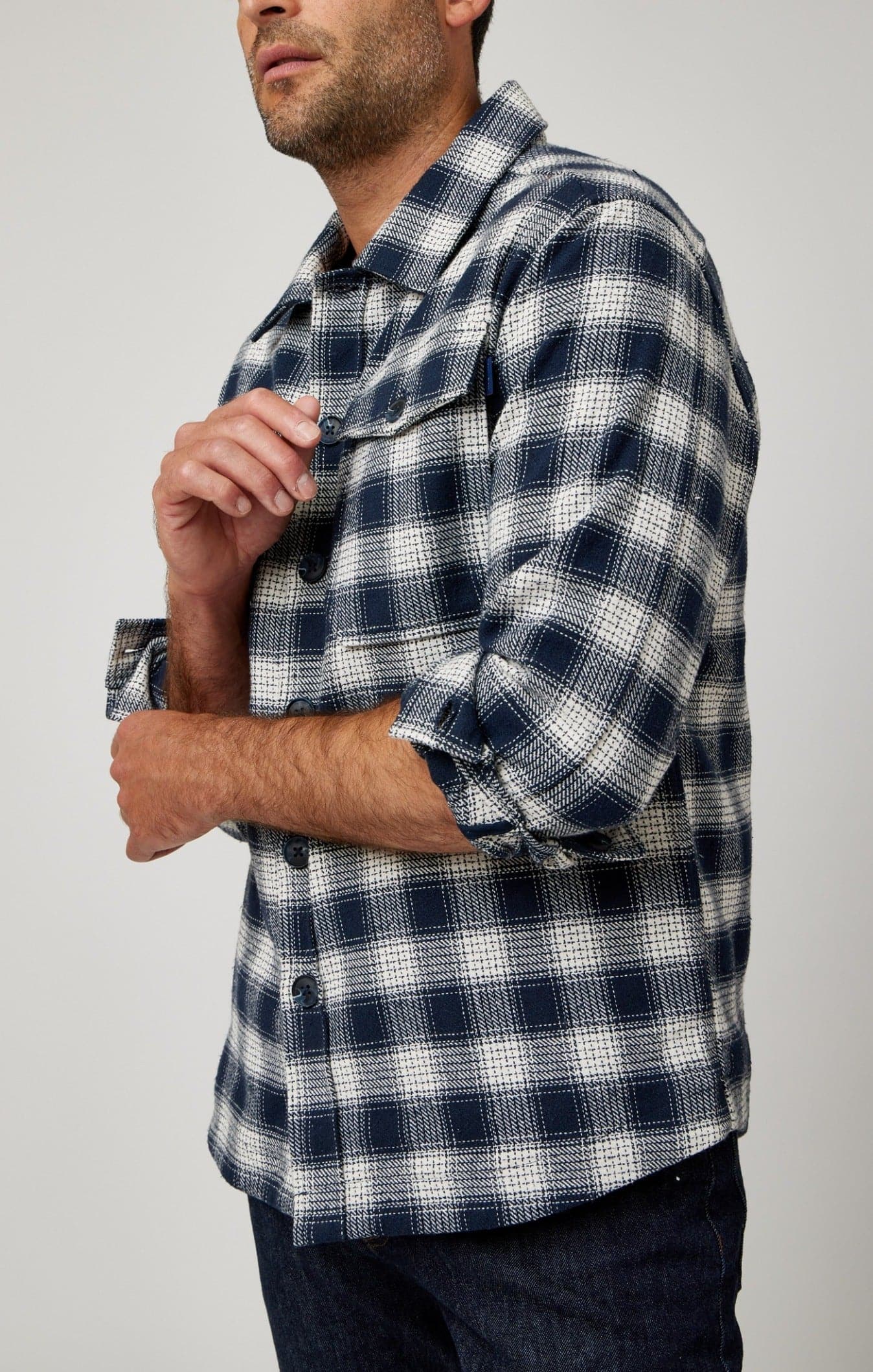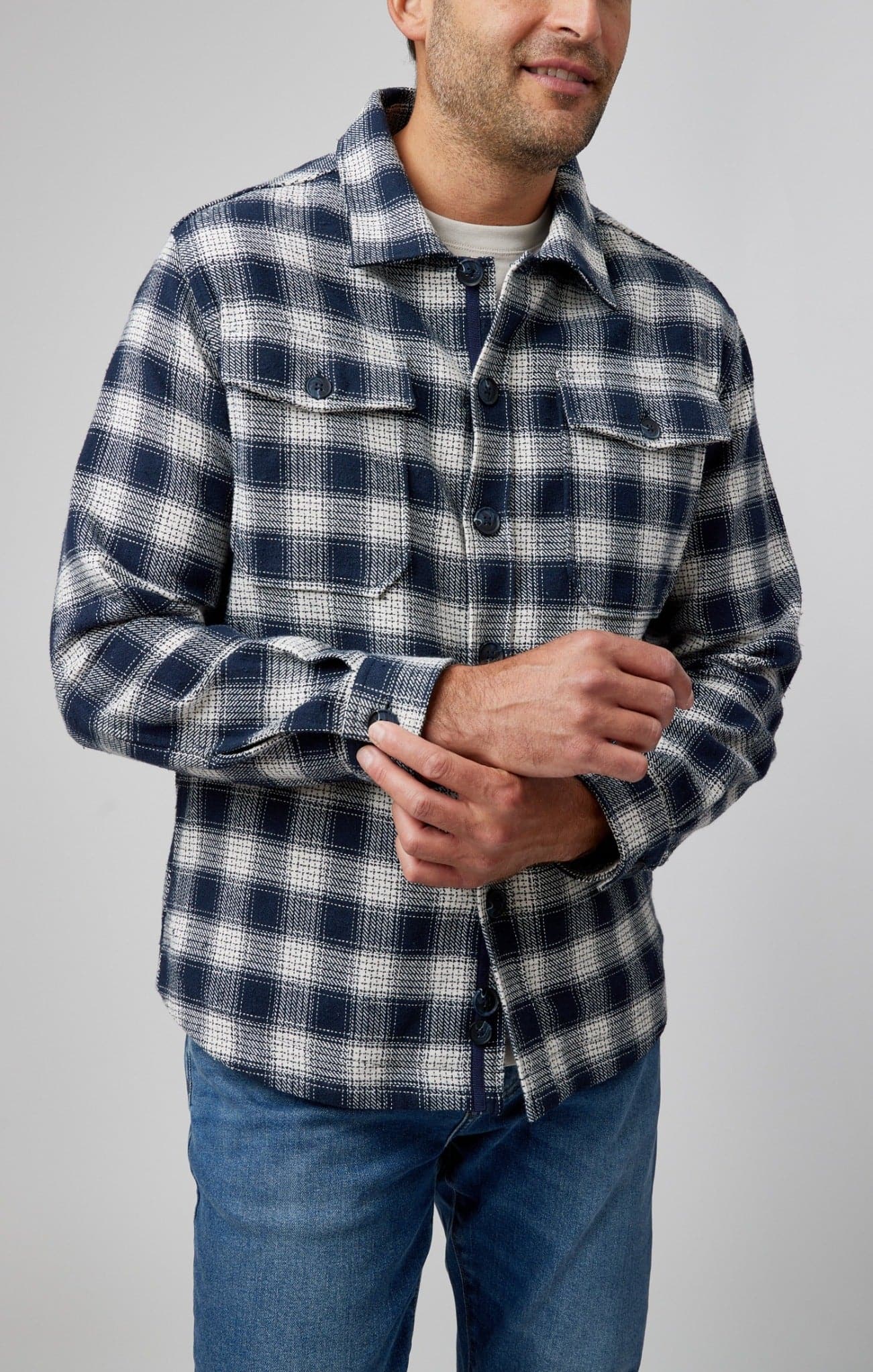 Embrace the Fusion of Comfort and Style: The Navy Jacquard Twill Shacket