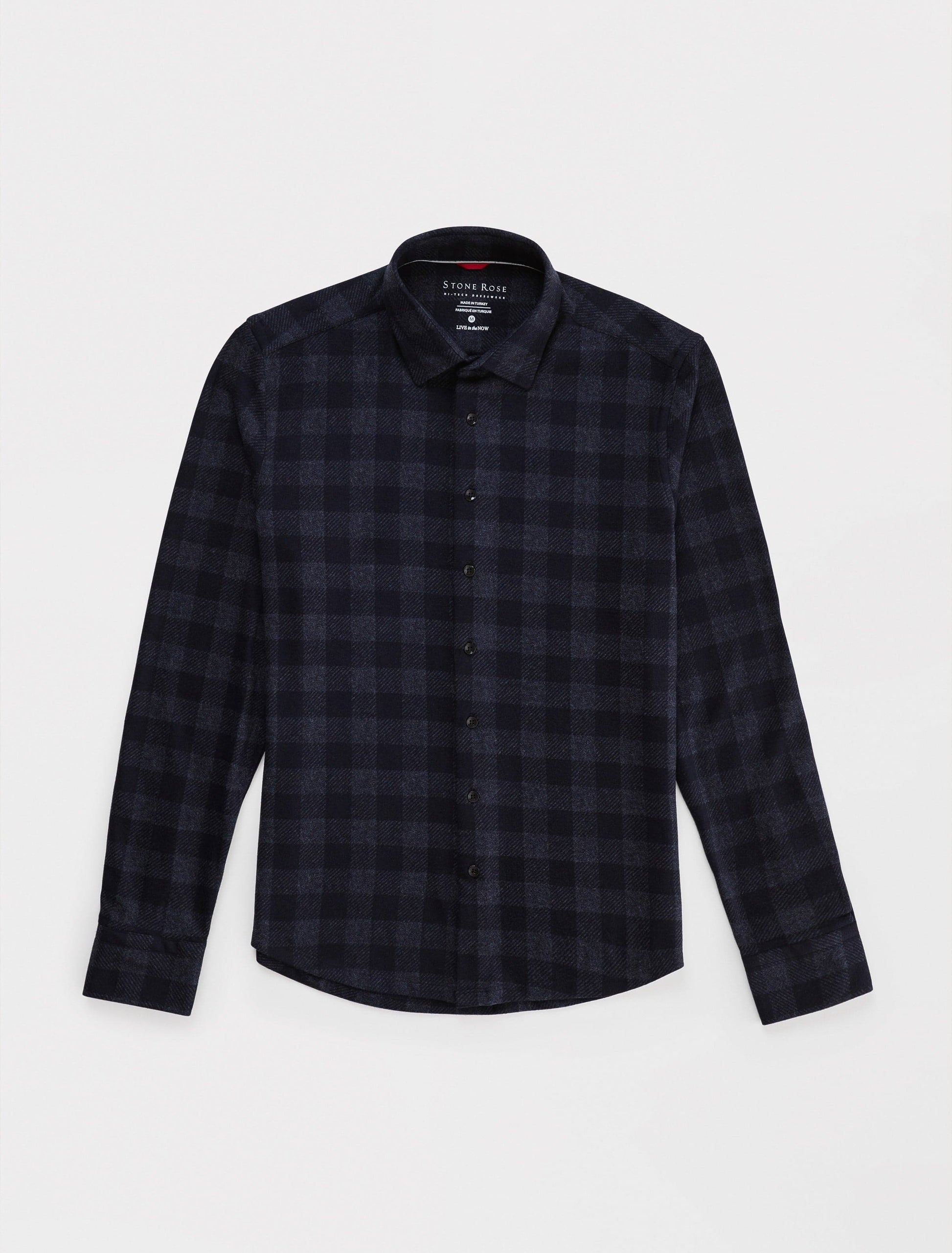 Navy T-Series Jersey Long Sleeve Fleece Check Shirt