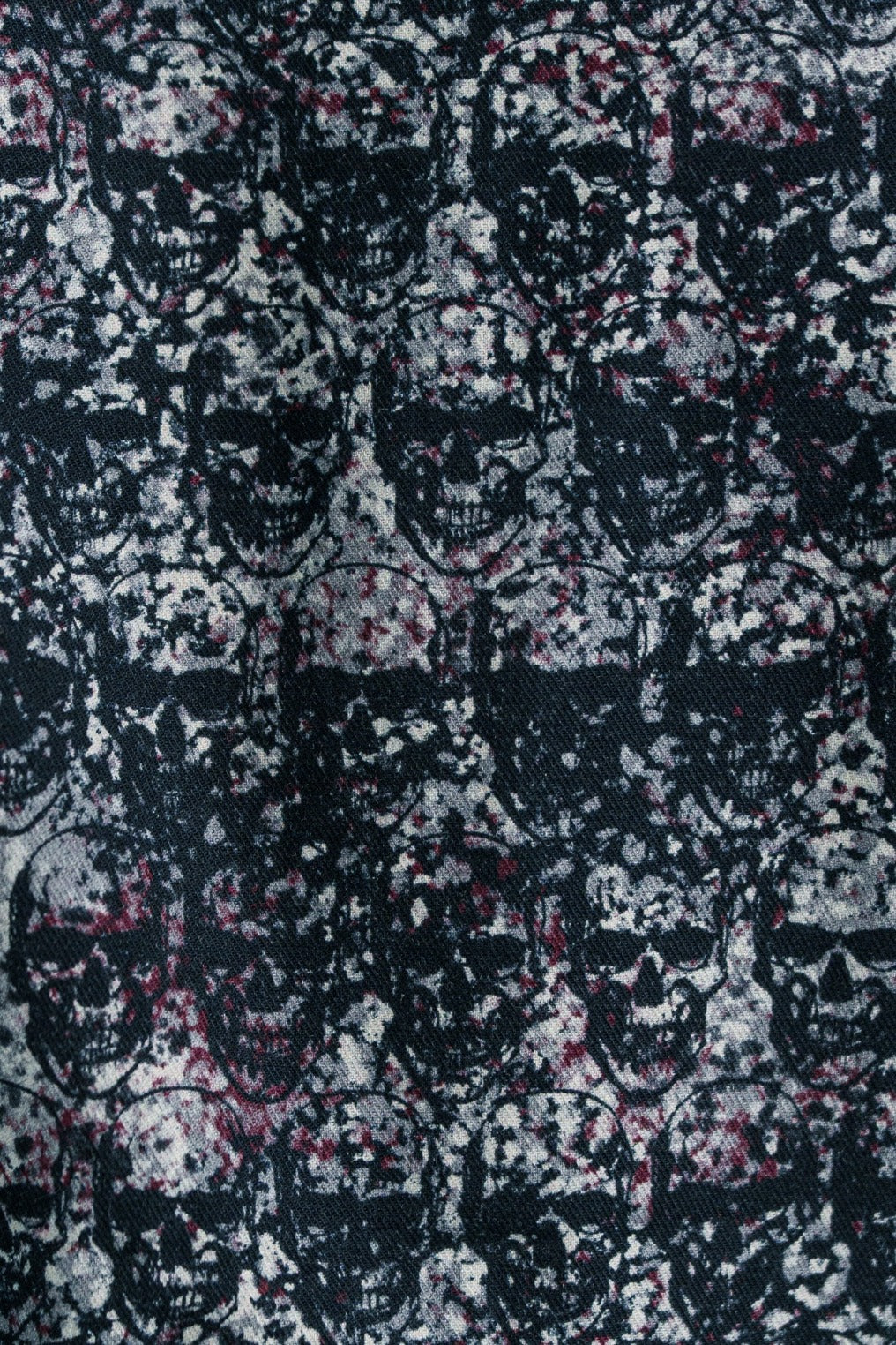 This season, discover our unique collection of twill shirts made with a special blend of cotton and Tencel. Tencel, a fiber derived from eucalyptus trees, adds a touch of breathability and moisture-wicking to the soft, flowy fabric - perfect for all seasons. Each shirt boasts distinctive accents and playful designs carefully crafted in-house. Don't miss out on our most popular skull print, a must-have for any wardrobe!