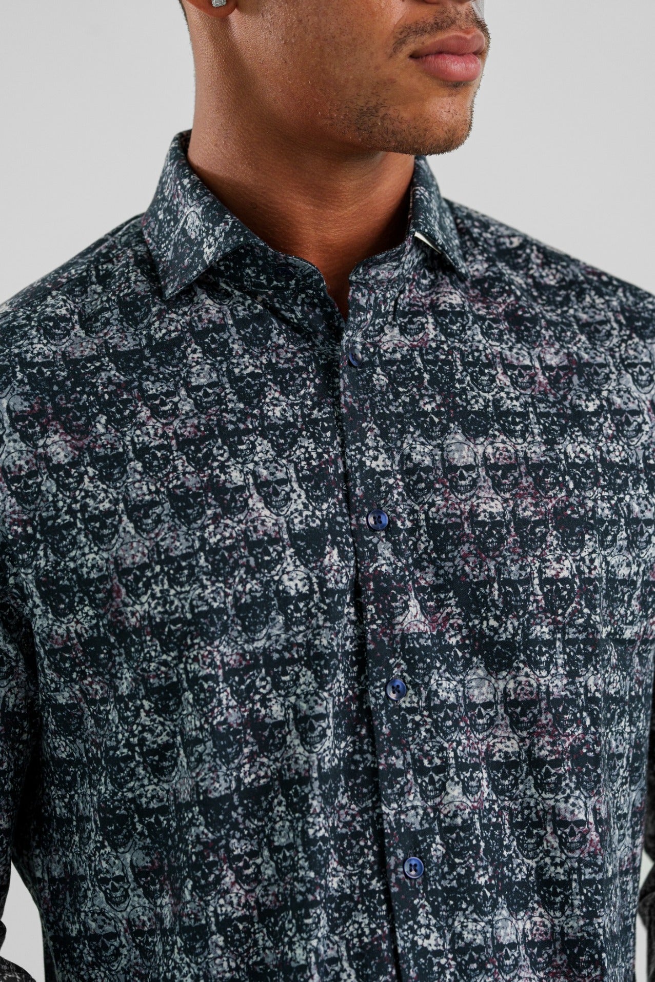 NOVA - Dark Blue Skulls Long Sleeve Shirt