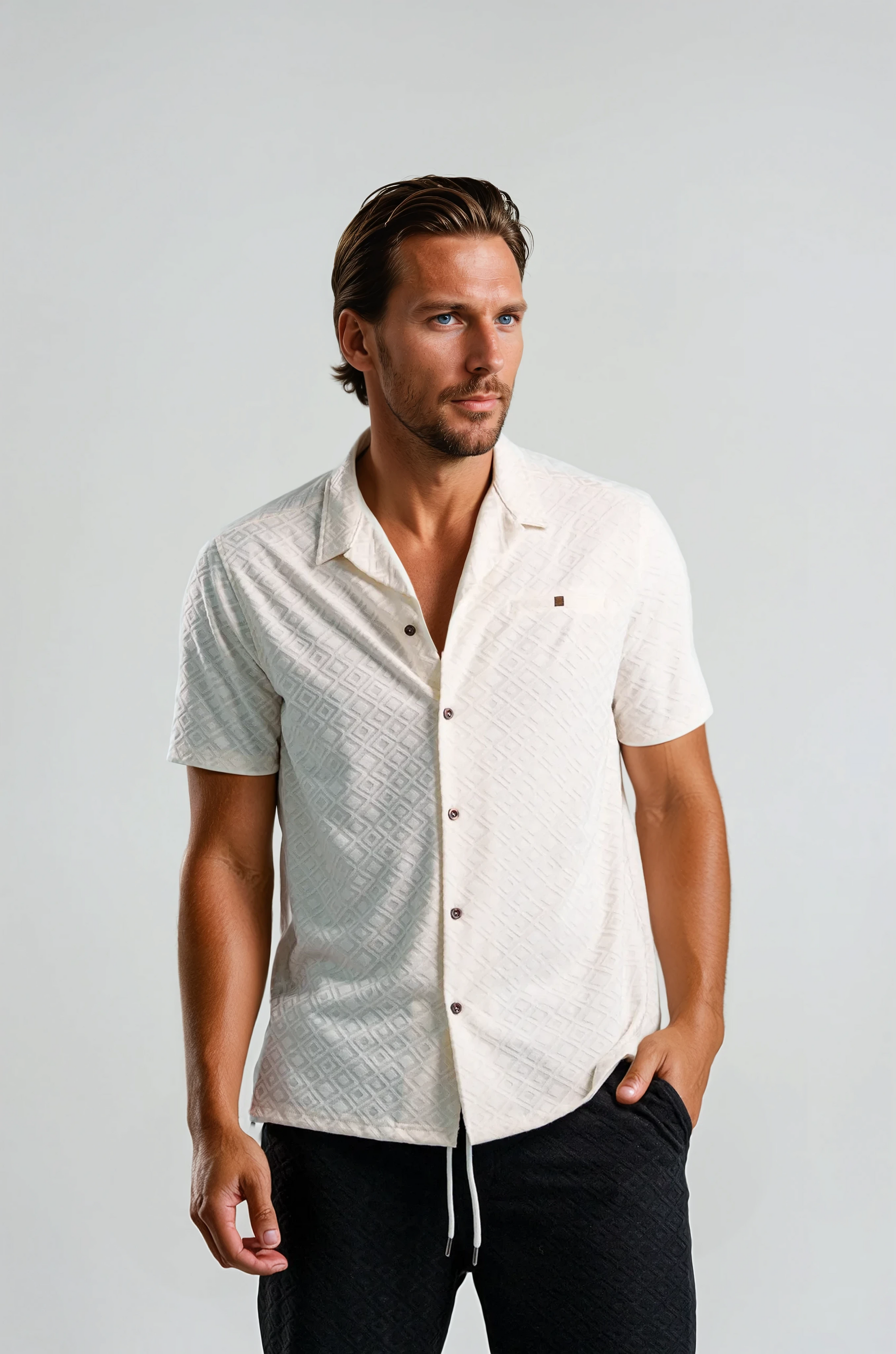 PALMA - Light Beige Diamond Geo Resort Shirt