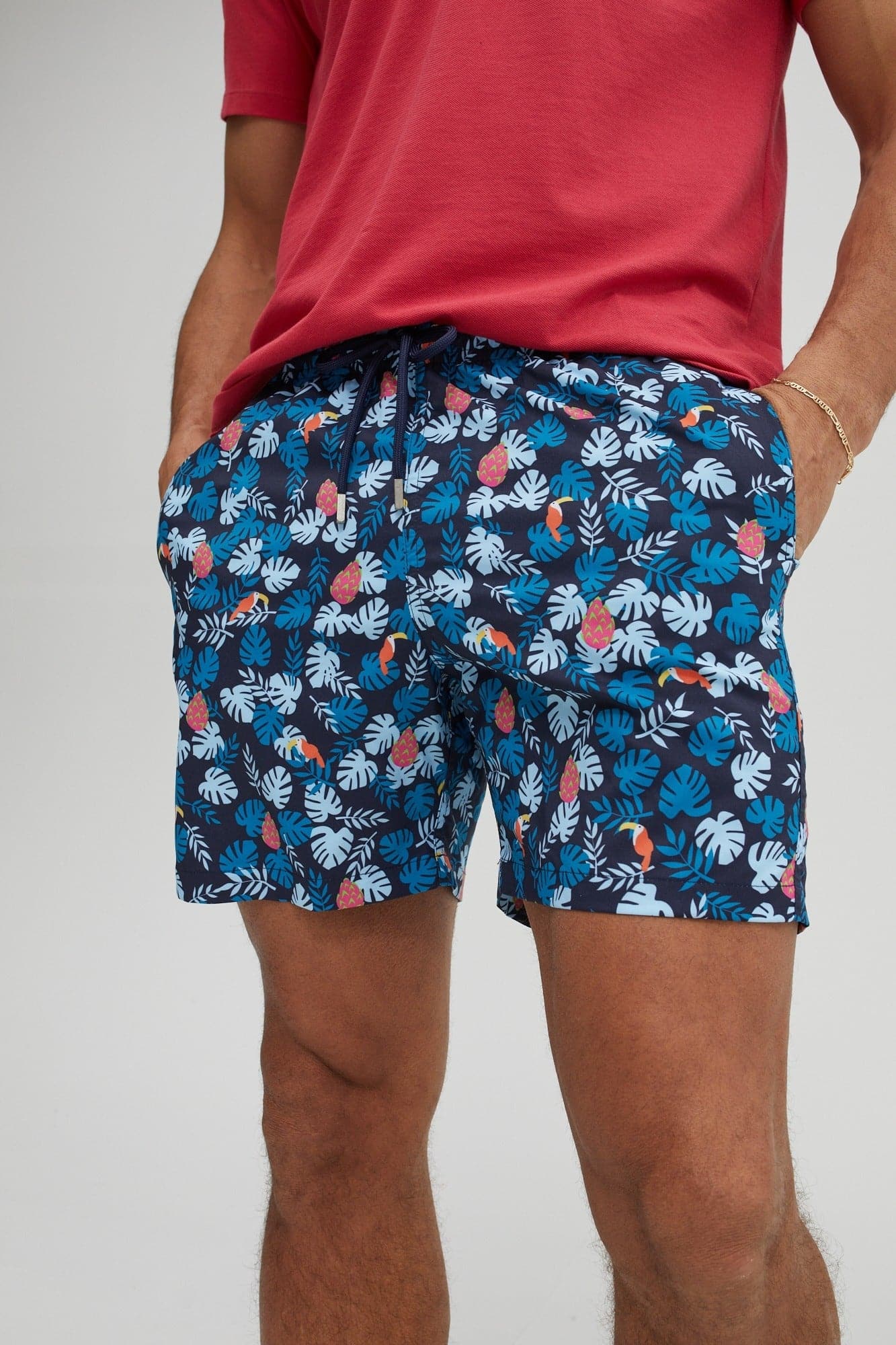 A selection of printed swim shorts made with fabrics that dry quickly once out of the water and printed with fade resistant dyes that can handle the sunniest of days. Our swim shorts feature a draw cord elastic waistband and pockets with embroidered holes to let water out.