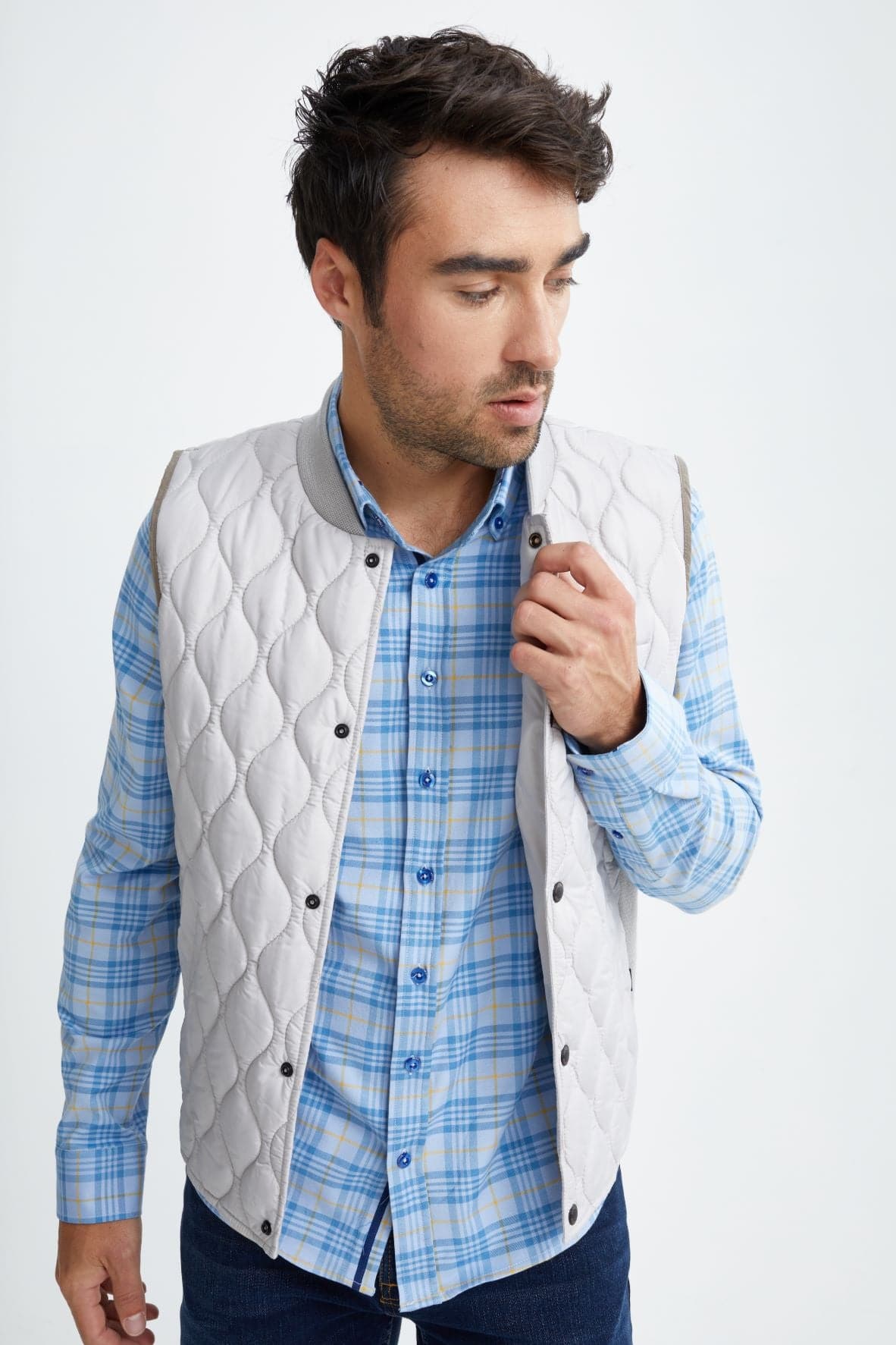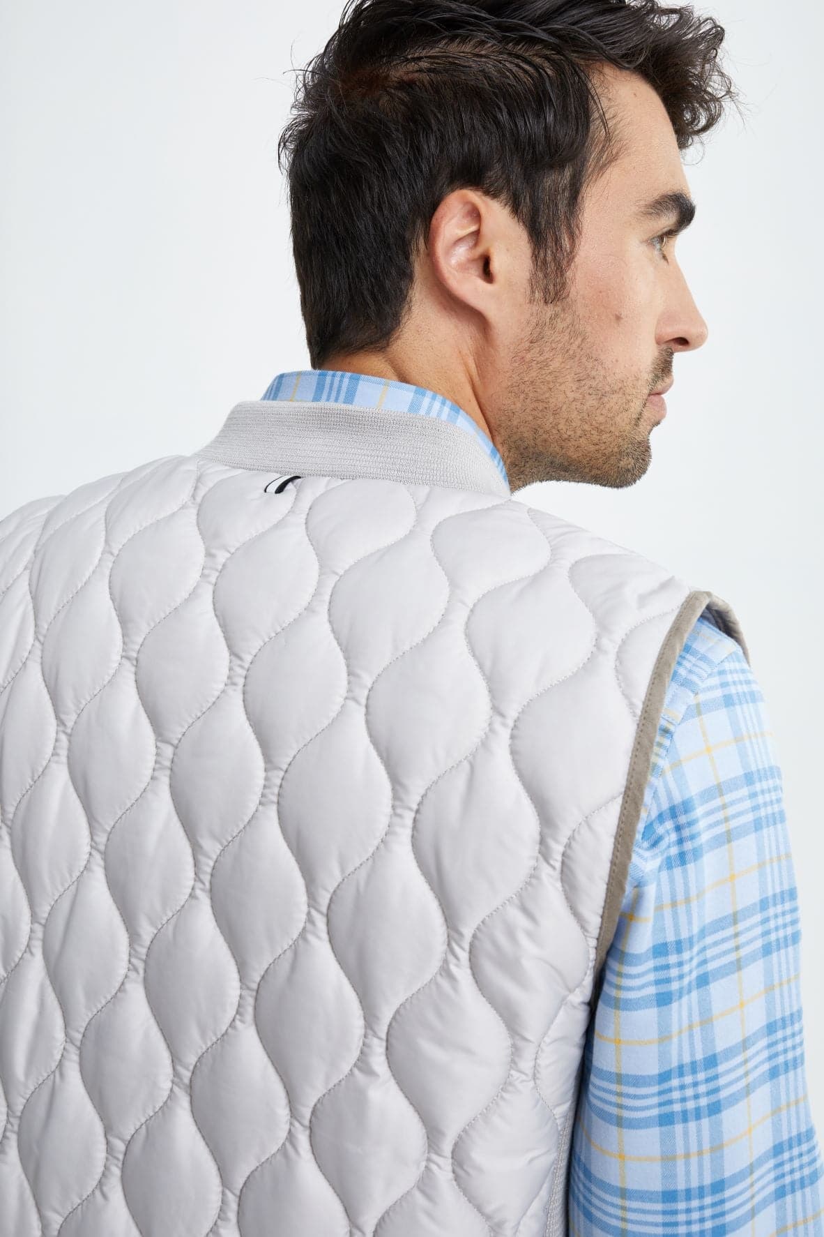 Embrace the elegance and functionality of the Silver Quilted Puffer Vest, a must-have for the fashion-conscious man.