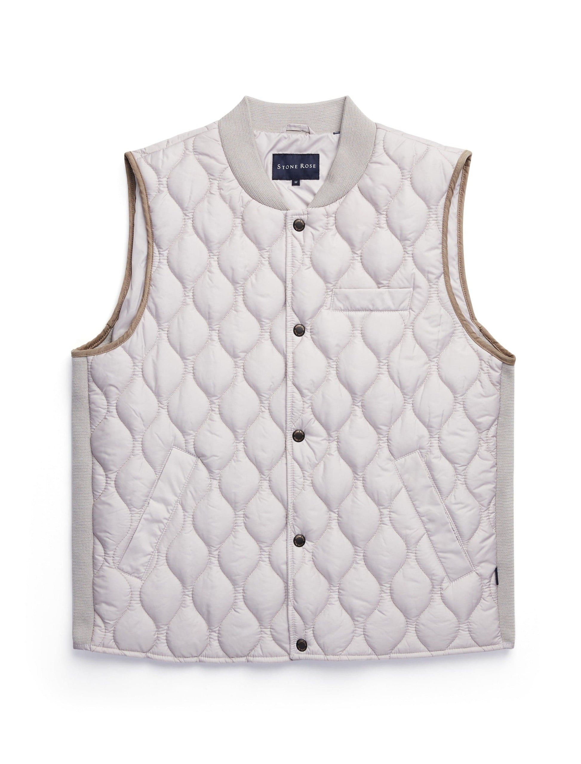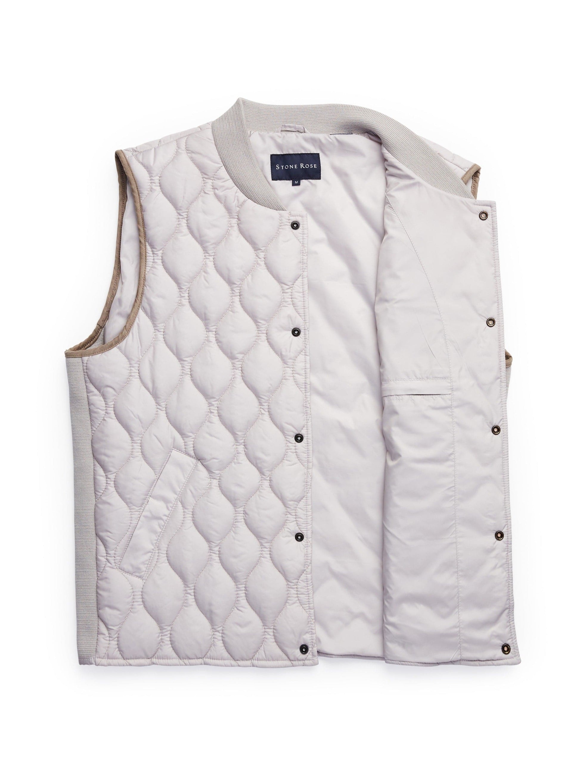Introducing the Silver Quilted Puffer Vest, a stylish and functional addition to the Stone Rose collection, designed for the modern man aged 18 to 80. This vest is not just a piece of clothing; it's a statement of style and practicality, perfect for the fall season.