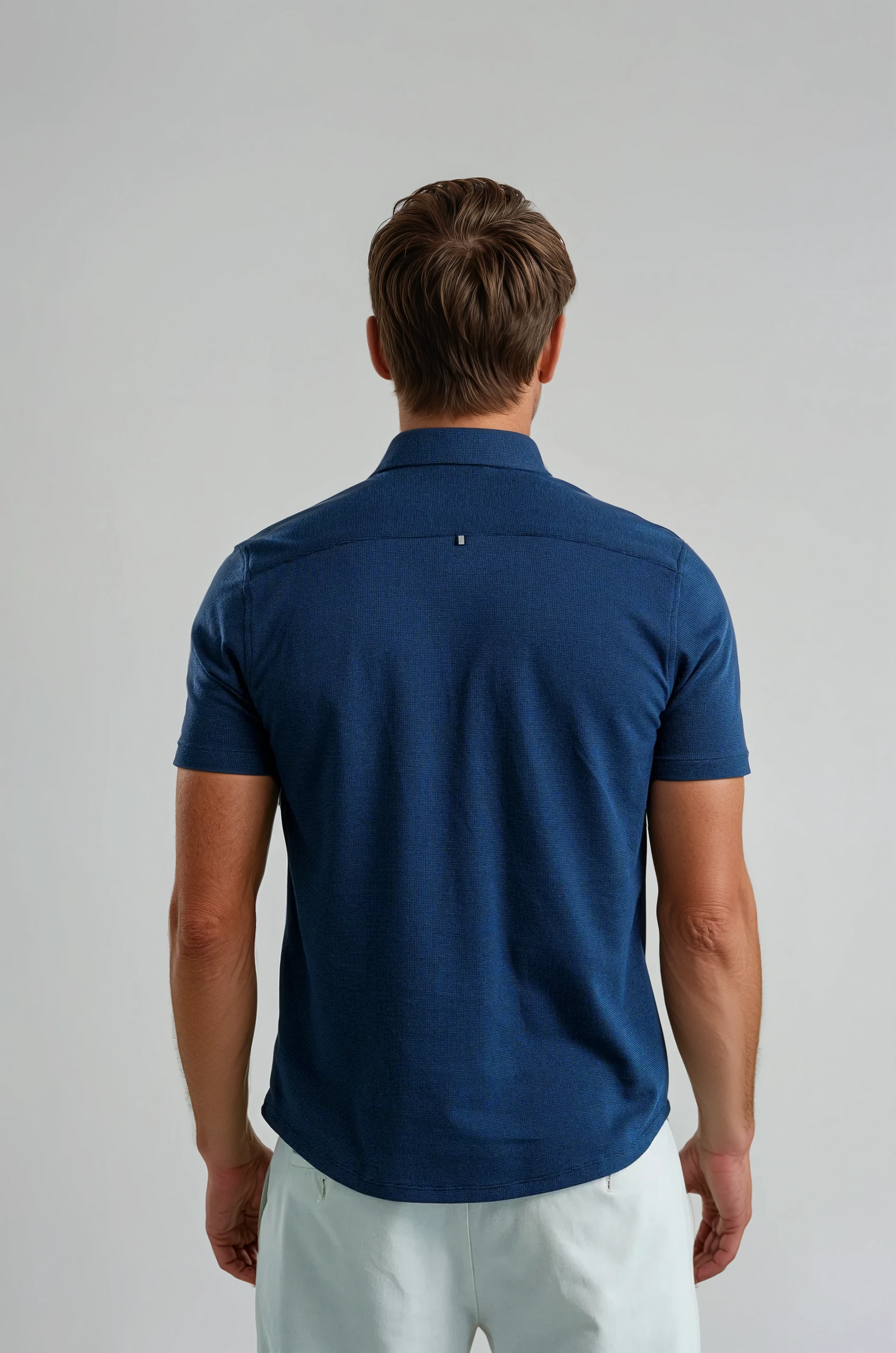 The Navy Short Sleeve T-Series Shirt is more than just a piece of clothing; it's a versatile staple that effortlessly combines form and function. Elevate your wardrobe with this essential piece, designed for the discerning gentleman who values both style and performance.