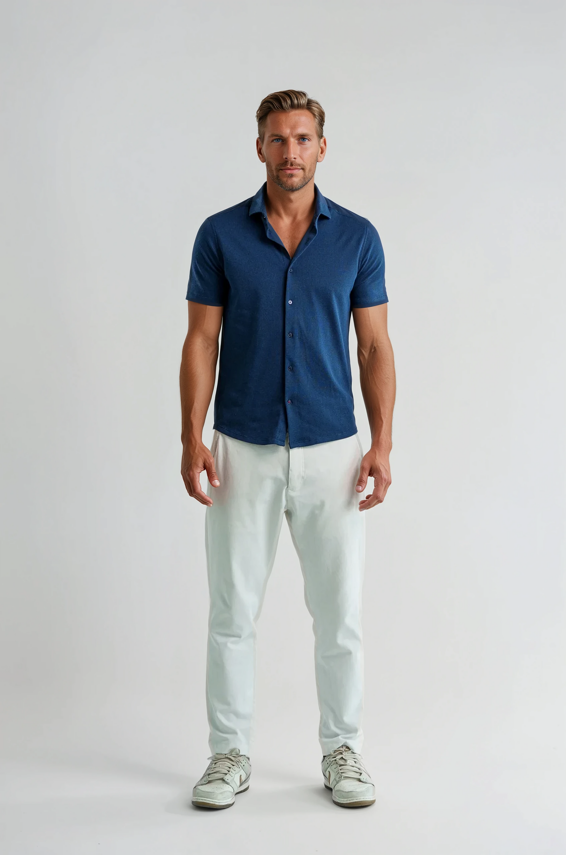 Discover the epitome of elegance and functionality with our Navy Short Sleeve T-Series Shirt. This shirt is a testament to timeless style and modern innovation, designed for men of all ages who seek a blend of classic sophistication and contemporary performance. The deep navy hue offers a versatile and refined look, perfect for any occasion, from casual outings to more formal gatherings.