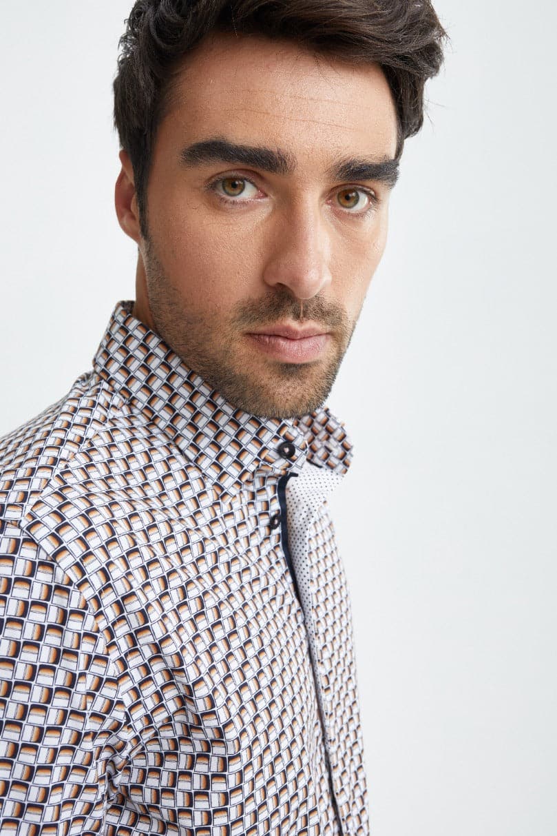 We added stretch to our poplin base for extra comfort of movement to this traditional shirting fabric. Made with cotton that has natural breathability properties to keep wearer feeling cool and dry. Each print is carefully designed in-house to create a unique piece. Silicone washed for a soft feel.